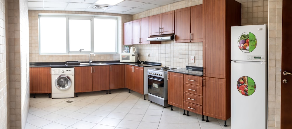 We stayed here with my husband and baby and a lot of families living here for a long time. But rooms are not soundproof and some smoking and drinking people coming at this hotel to spend there time and bring too much headache for customers: sounds and all smell you can feel at your room day and night. Before never hotel where we stayed in Dubai was like this and also it was not allowed to coming at night for another people who don't stay at hotel. Here security don't mind. Today near room guys made party, like a 20 people came. They are drinking, smoking and make loud music and now 1.00am and security can't do anything. When we made complaints to reception they like don't hearing, also don't helpful at all. It's means anybody can come at this hotel and disturb long stay family customers.