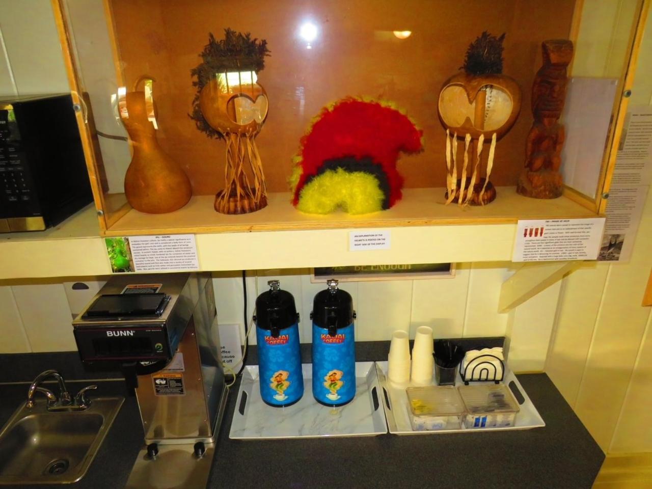 Luv the Display and collection of Hawiian Culture artifacts! The owner was very informative. The room was very comfortable and provided everything that one might need. Very Vintage. Luv it! Natural foliage everywhere!