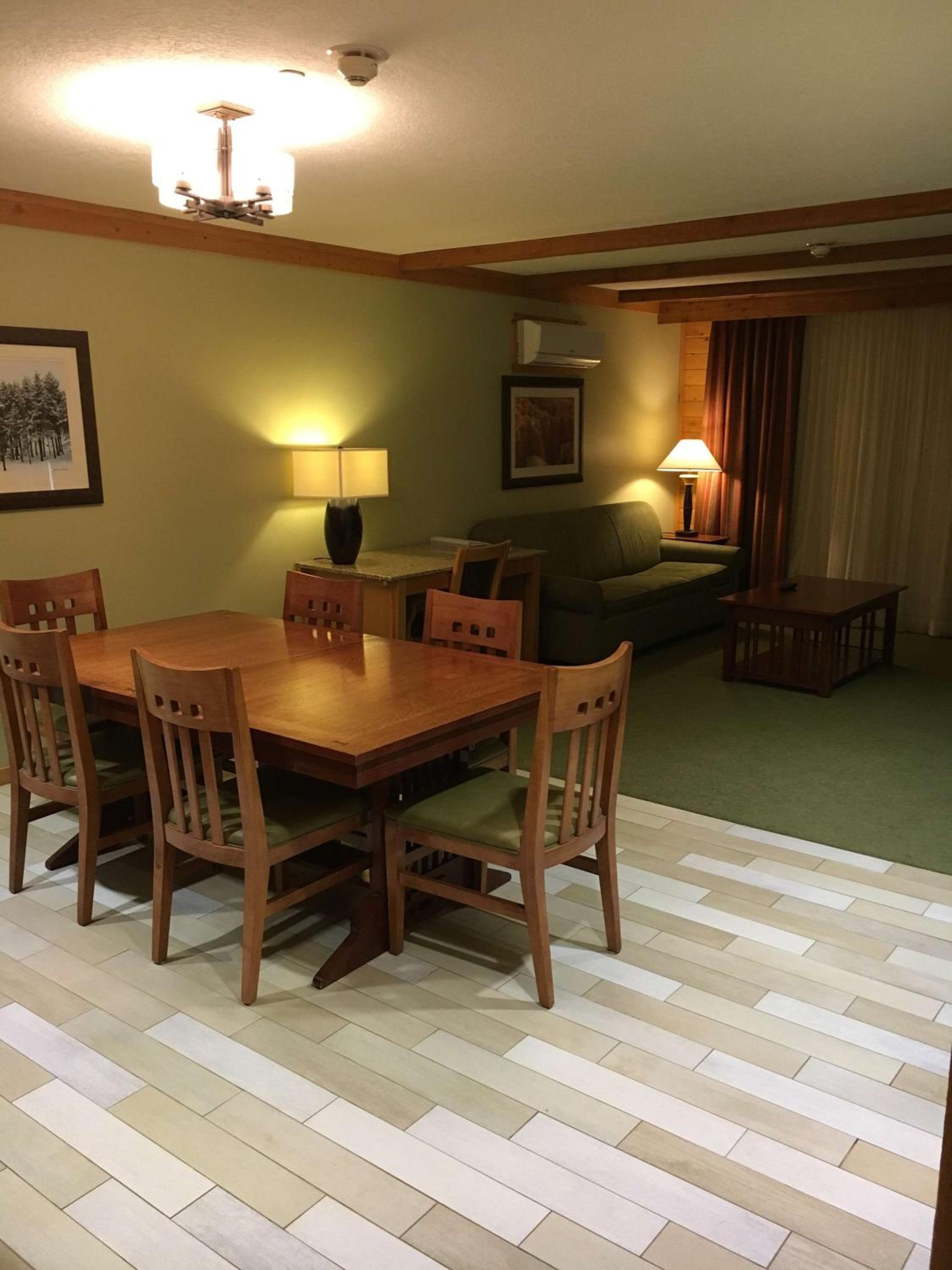 Family room very clean and comfortable. Excellent location close to stores and the Navajo ski resort. Employees at the lodge were very nice and helpful. Overall excellent stay.