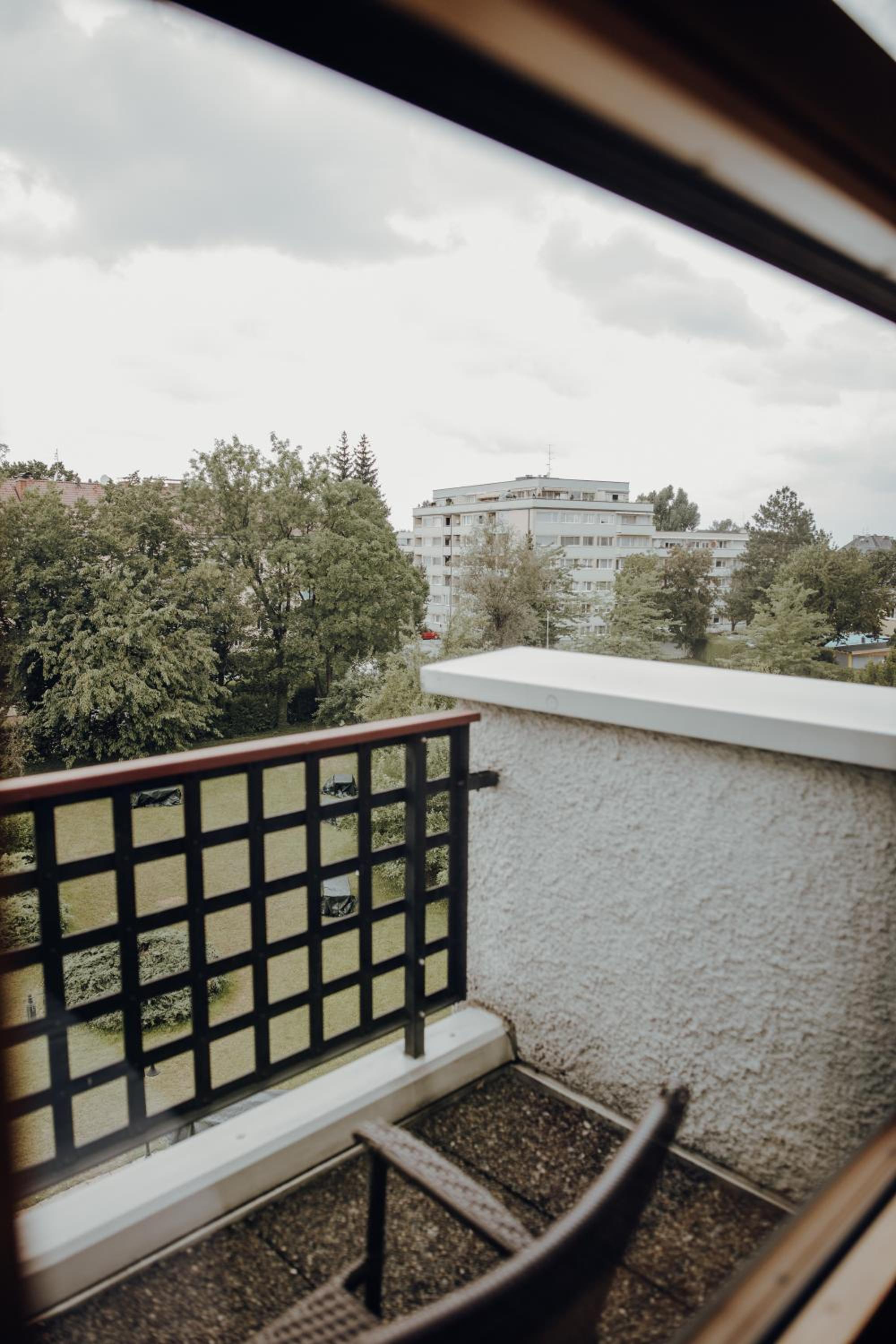 Der Balkon war Richtung Innenhof und Wiese.