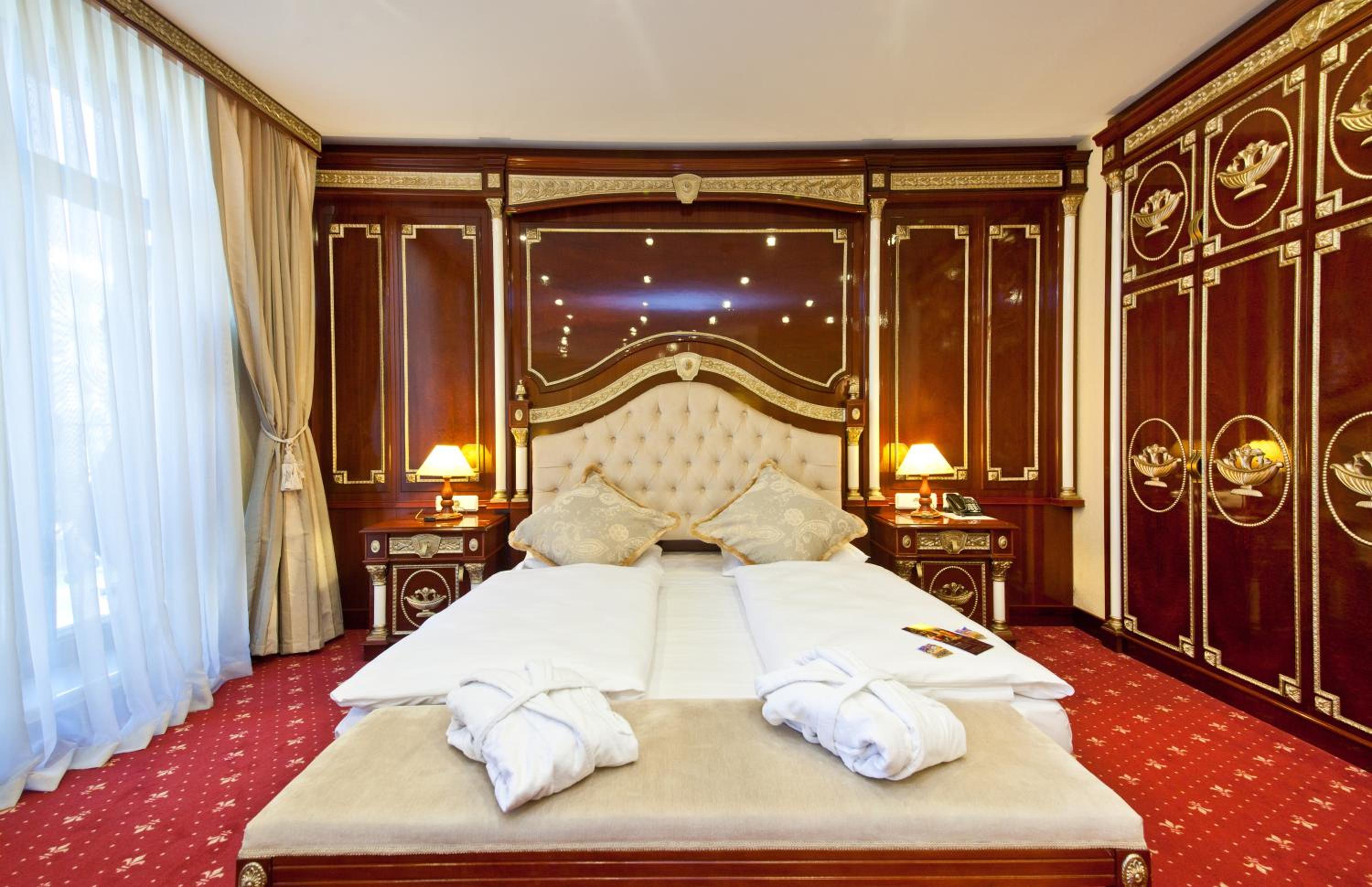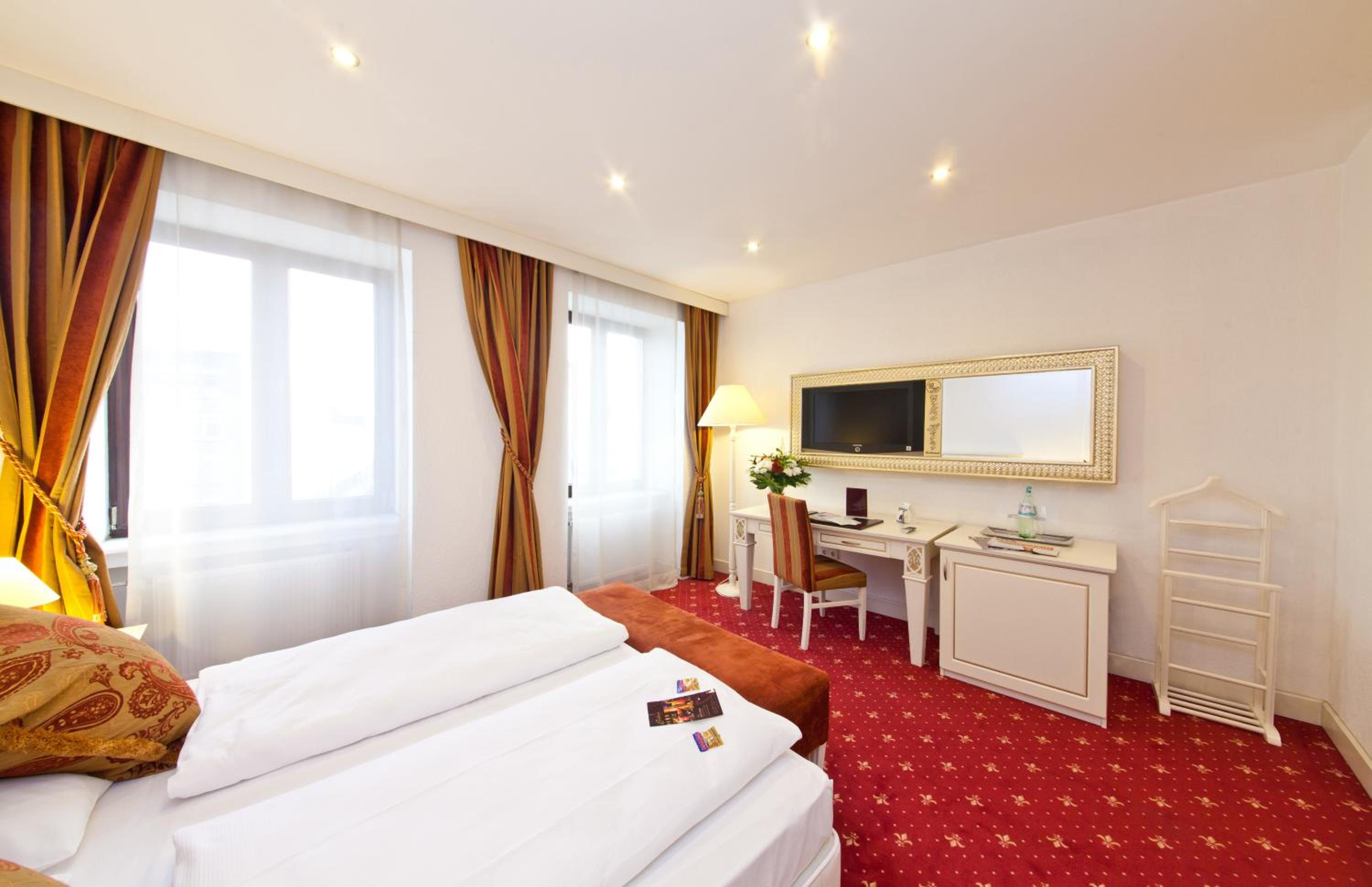 Indulge in a delicious breakfast buffet at our hotel and savor exquisite meals at the Pfefferkorn restaurant. Unwind in our elegant lounge or enjoy a drink at the Casablanca bar.