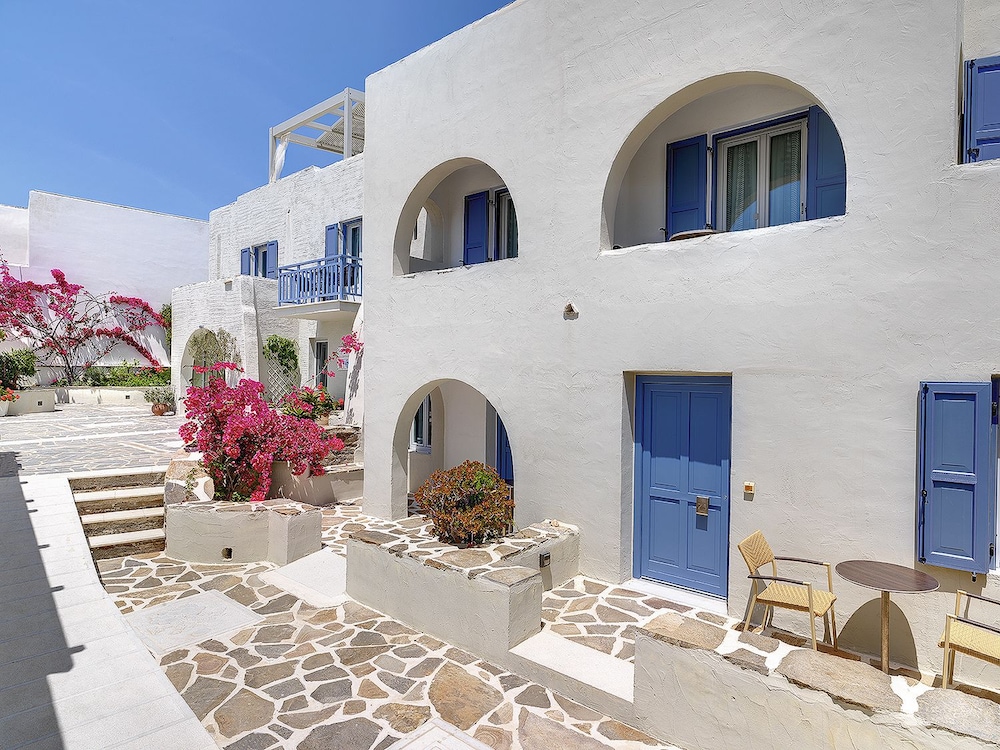 We had such a wonderful time at the Iria Beach Hotel. It's literally steps from Agia Anna and within walking distance to Agios Prokopios and Plaka beach. Nearby, there are great beach clubs and restaurants, and the KTEL bus transportation is close, taking you to the main cities/towns.