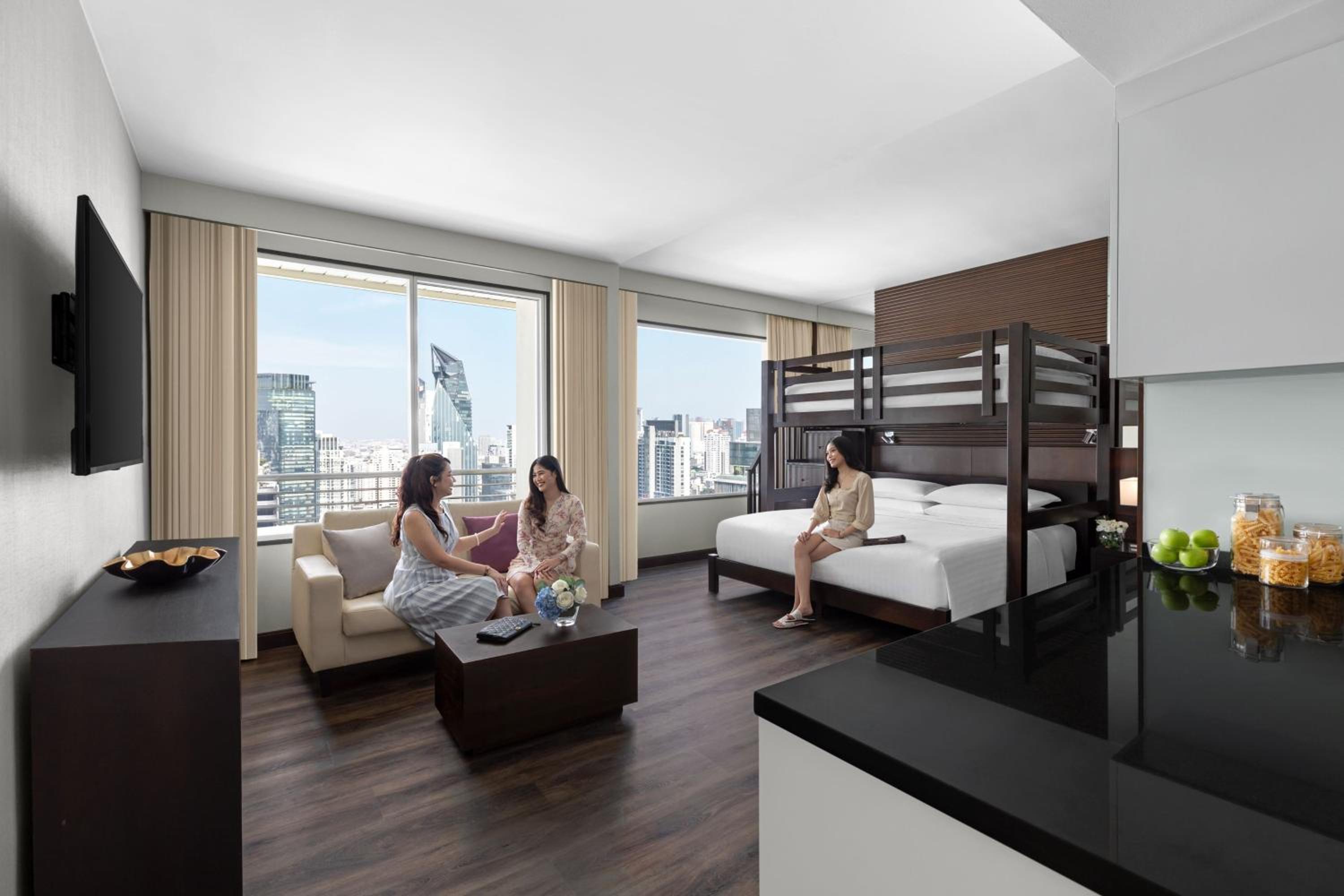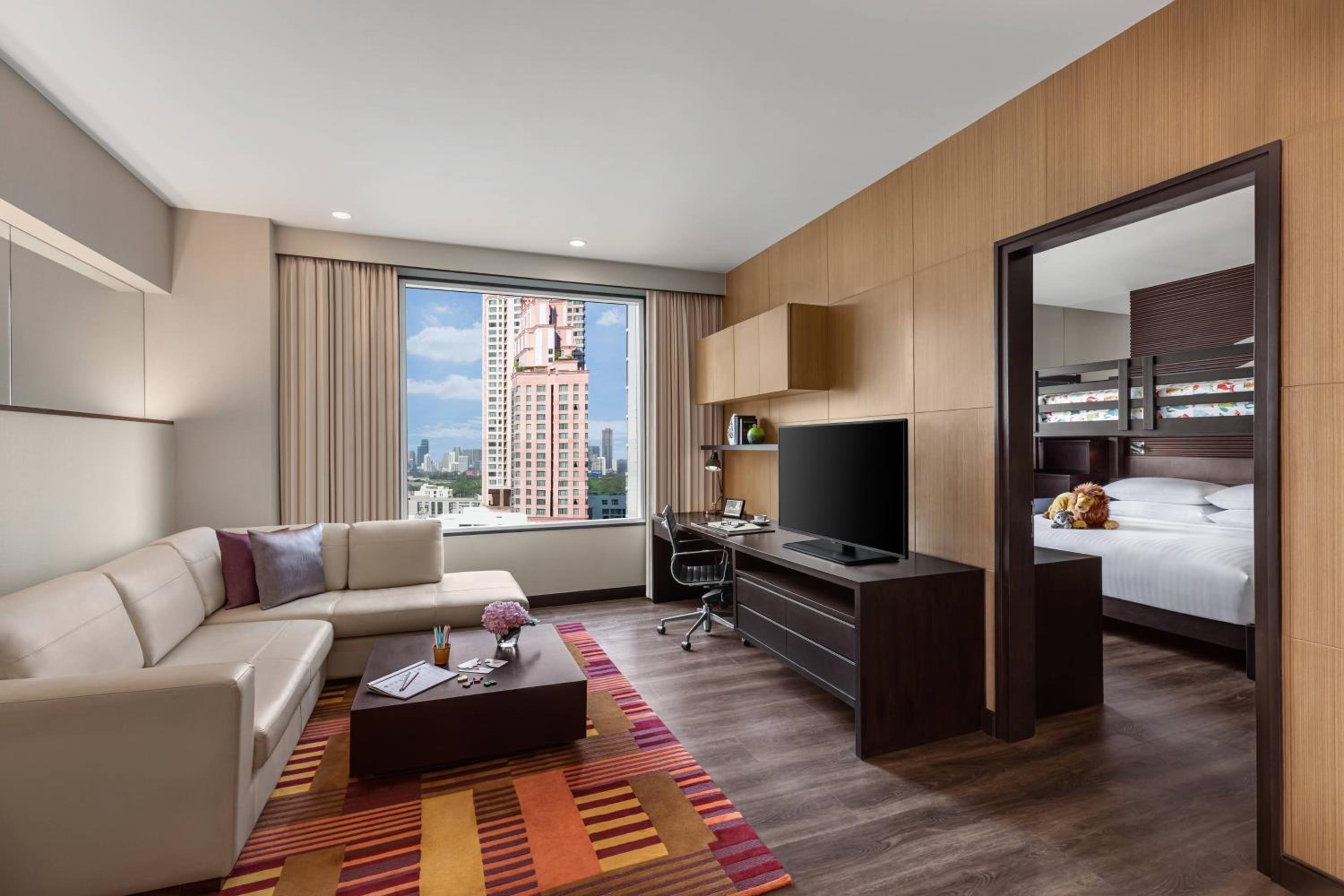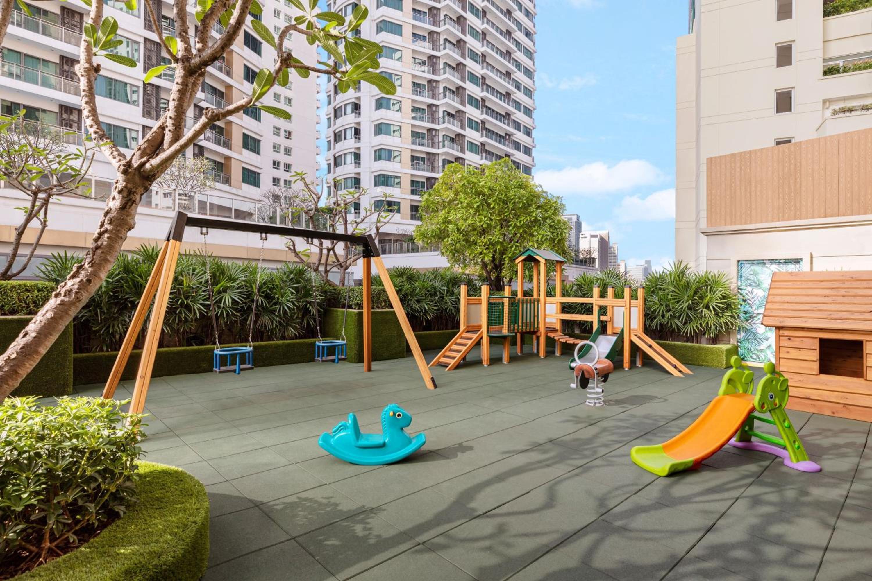 Marriott Sukhumvit Park offers a range of luxurious amenities, from the outdoor swimming pool and kids play room to the golf practicing area. The hotel's free Tuk Tuk shuttle service ensures convenient access to nearby attractions, making your stay both comfortable and enjoyable.