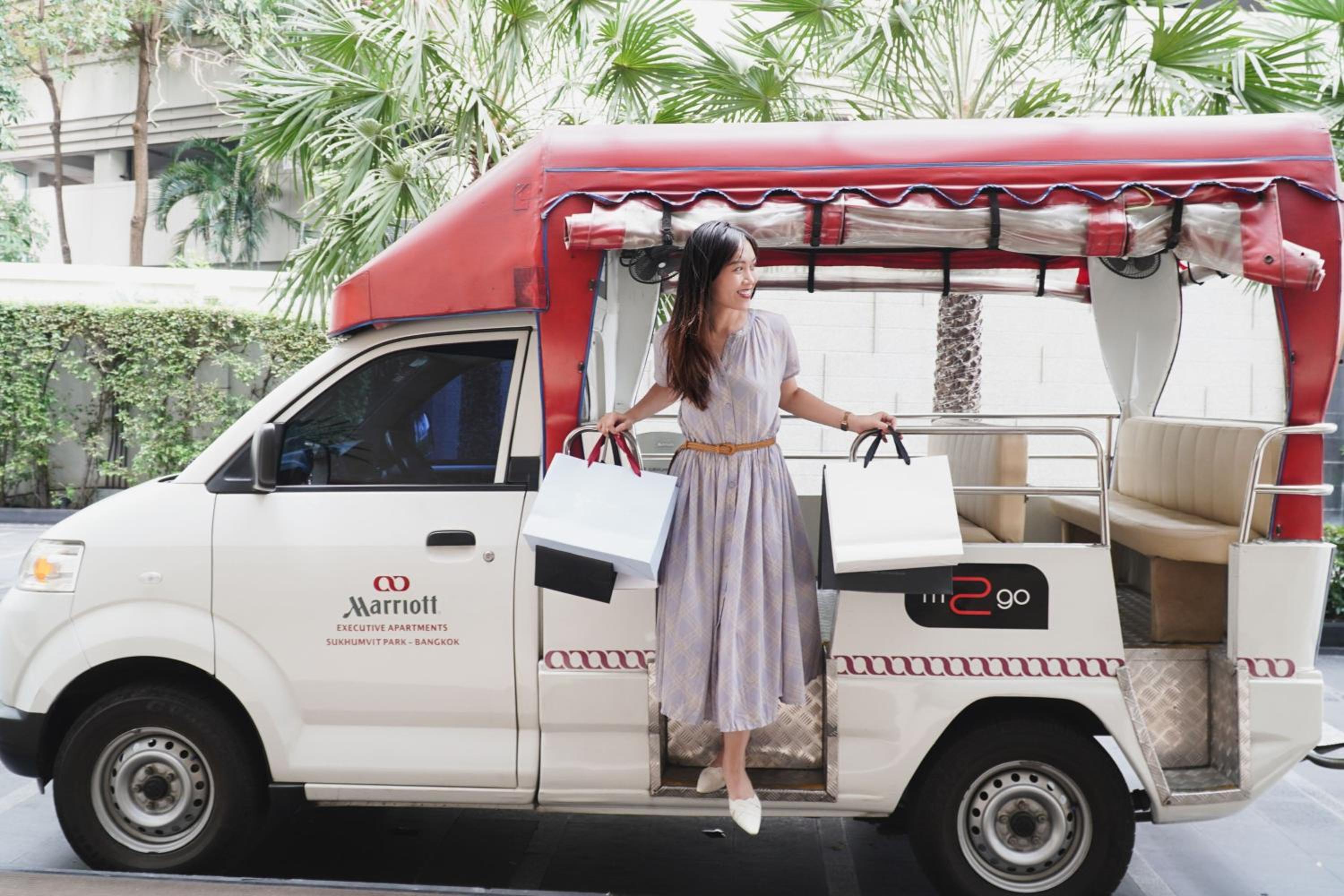 The hotel provides a complimentary Tuk Tuk shuttle from/to the BTS Skytrain Phrom Phong. The shuttle service is available from 6.00 AM to 10:30 PM.