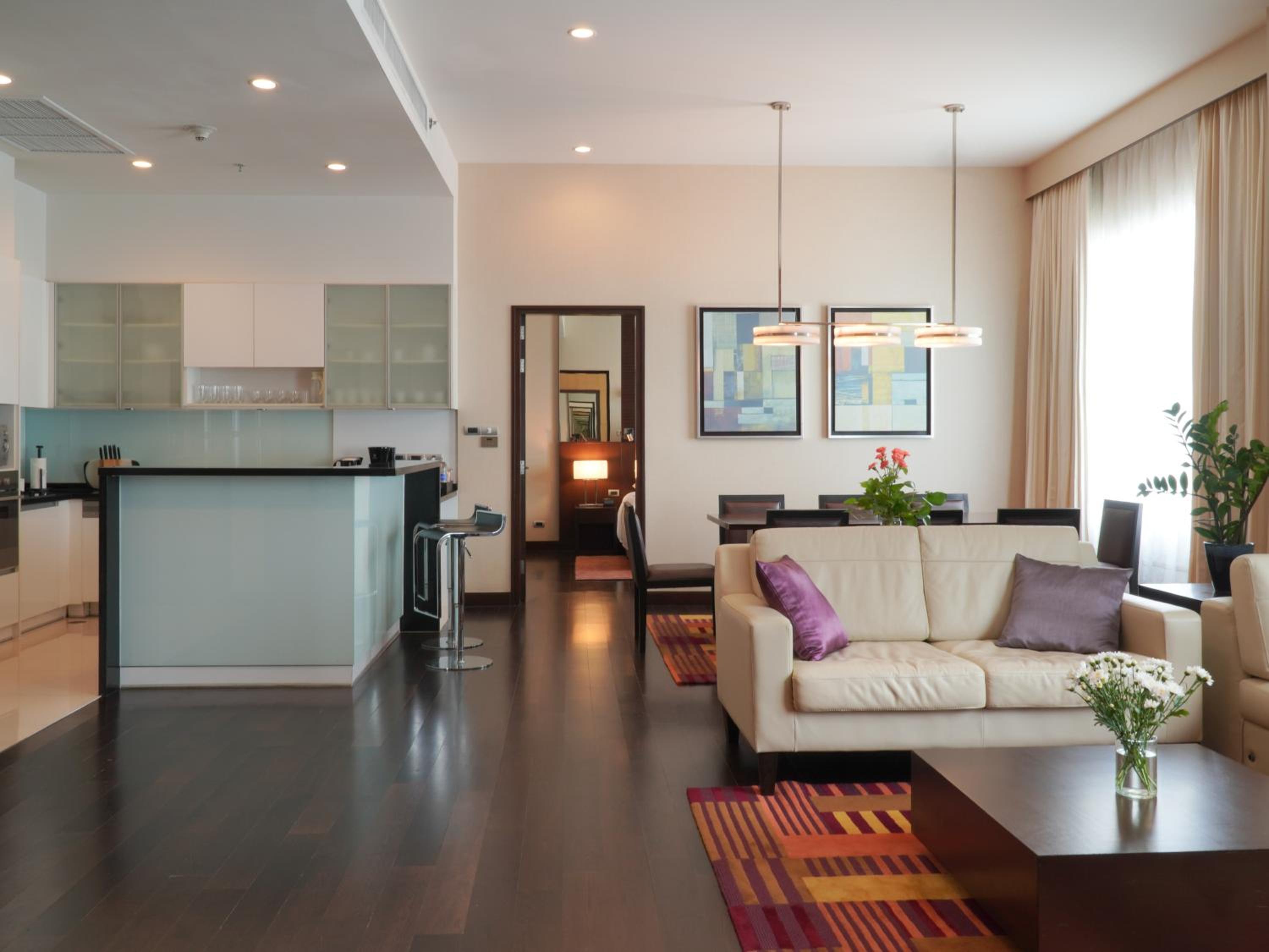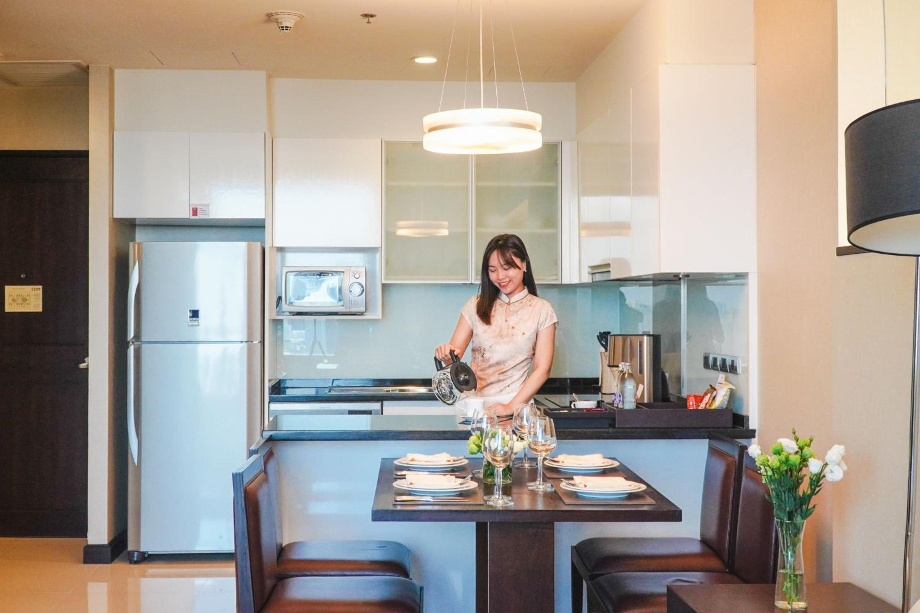 I had a wonderful stay at this hotel. The staff were incredibly kind, polite, and truly reflected genuine Thai hospitality. My room was spacious, comfortable, and fully equipped with everything needed for a pleasant stay. The kitchen was very practical and easy to use, fresh water was provided every day, and having a washing machine with a dryer function was especially convenient. Breakfast was generous, with a wide selection of Asian dishes. The gym was also well equipped with several types of machines.