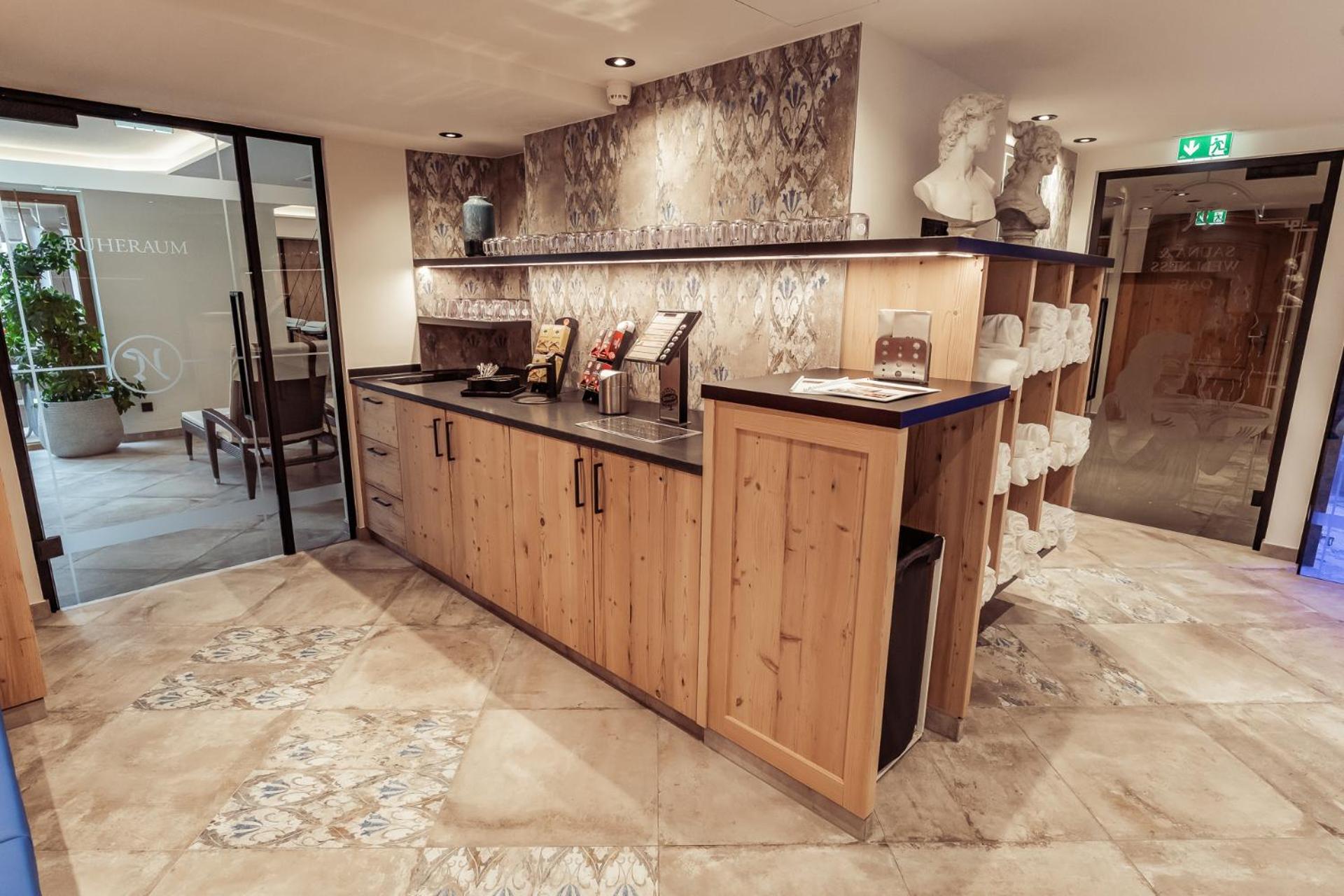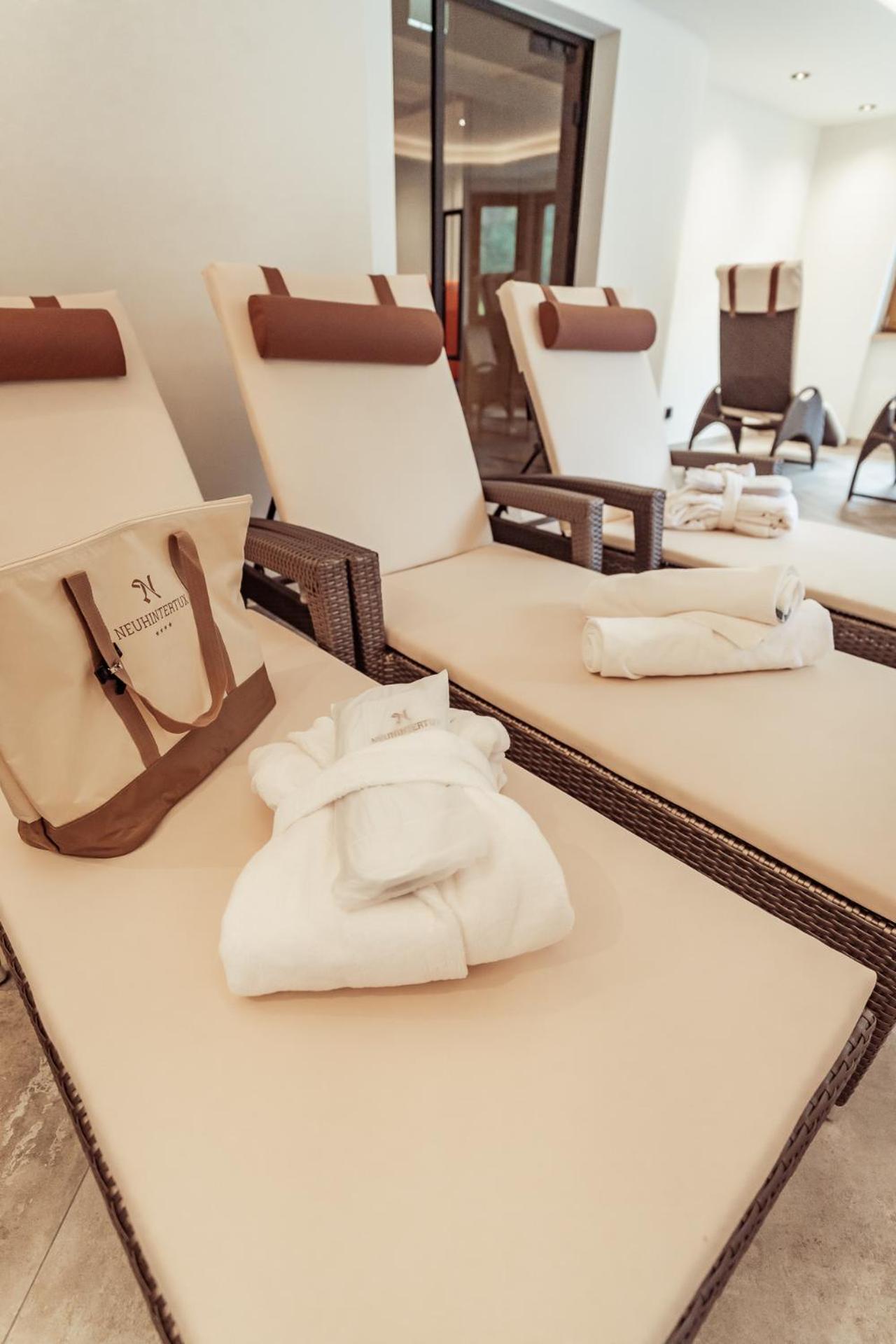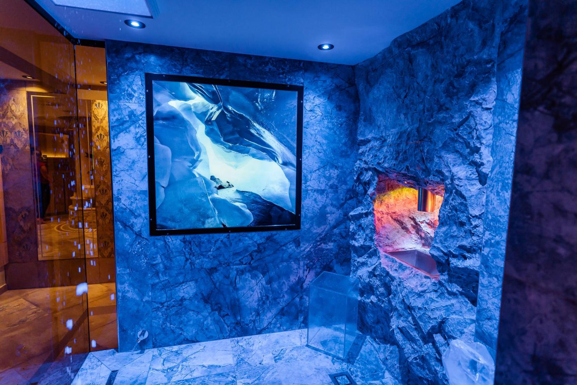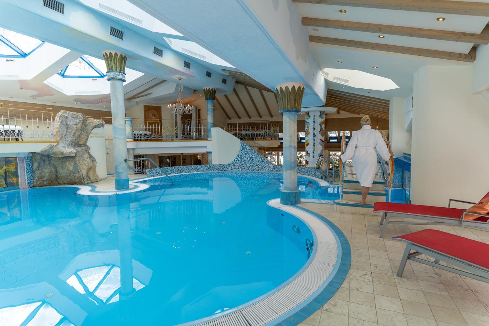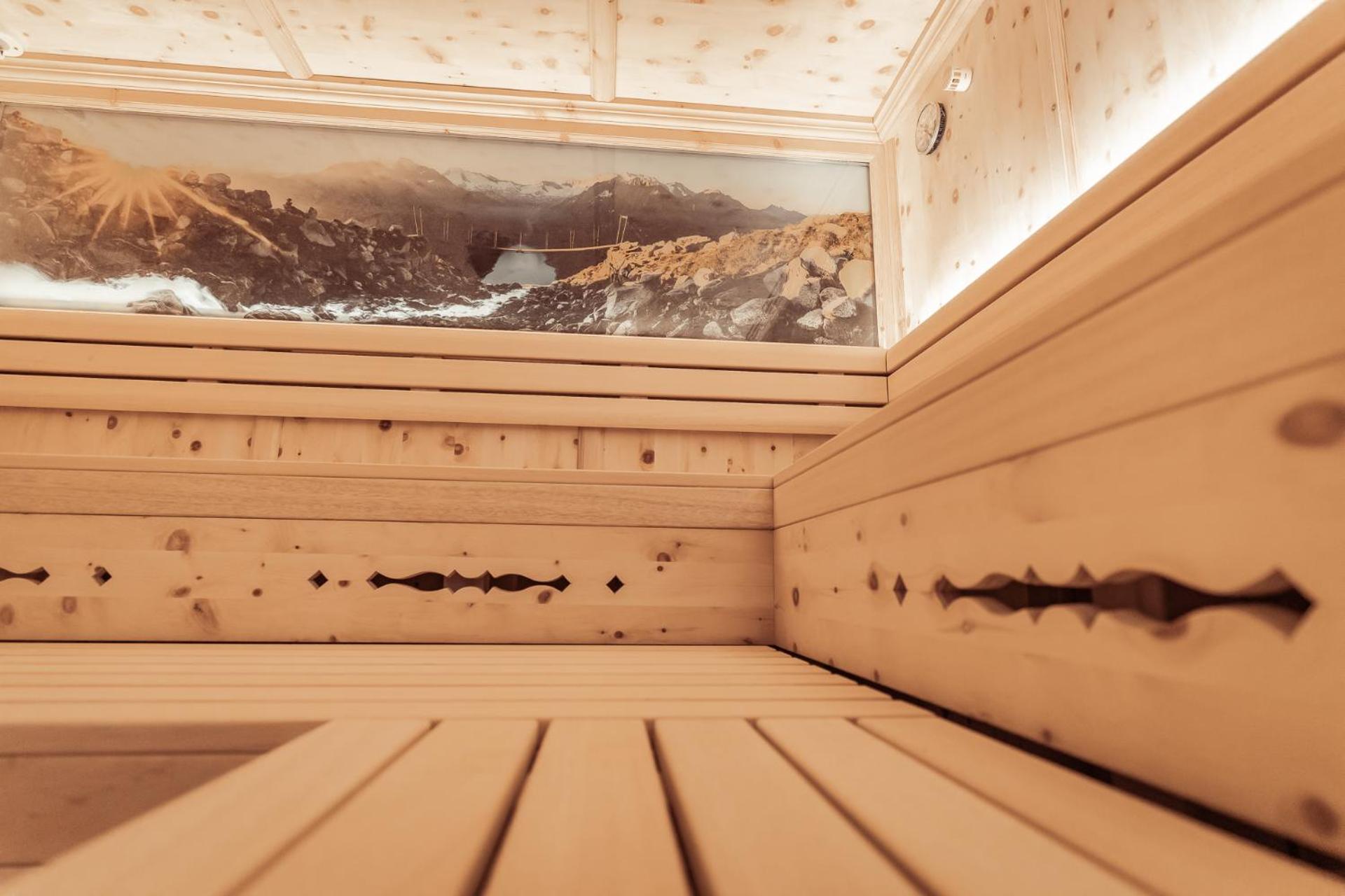 Indulge in a 750 m² wellness and beauty area on the top floor, providing stunning views of the Hintertux Glacier, perfect for relaxation and rejuvenation.