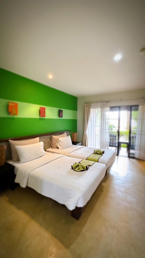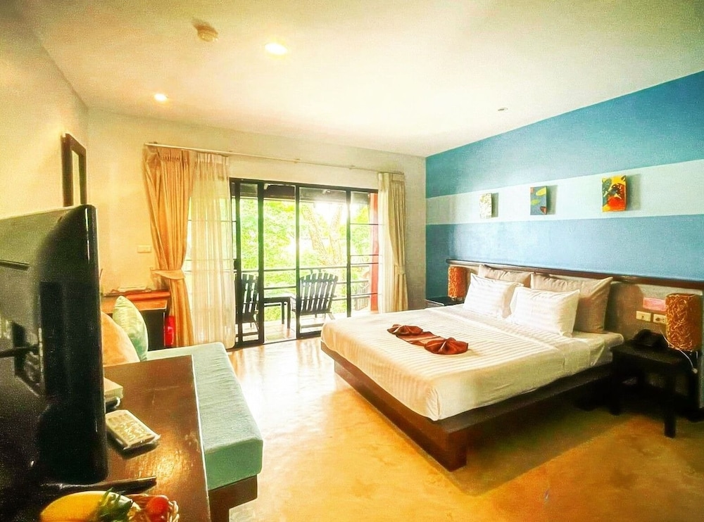 พักห้องแบบดีลักซ์ชั้น2 ห้องพักสะอาดไม่ดูเก่าเกินไปเตียงนอนแข็งไปหน่อย ประตูห้องน้ำตอนปิดประตูจะเสียงดัง ฝักบัวเก่าเป็นคราบน้ำ วิวห้องพักมีต้นไม้บังไม่ได้ตัดแต่งกิ่งทำให้บังวิวทะเล ถ้าเป็นห้องชั้น1 จะเห็นวิวสวนดูแล้วทึบๆ แต่ถ้าเลือกห้องแบบวิวทะเลห้องจะอยู่หน้าทะเลเลย หรือถ้าเลือกแบบเป็นบ้านก็จะได้วิวสวนหน้าบ้านพร้อมวิวทะเลกว้างๆ