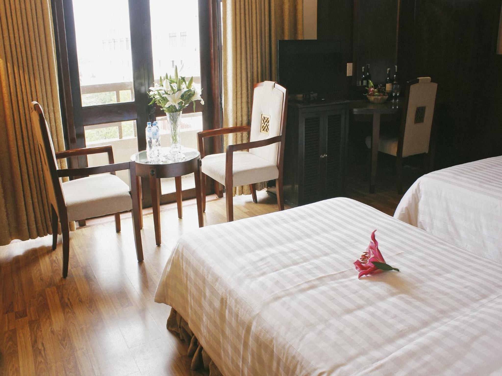 Jasmine Hotel, nestled in central Hue City, invites you to indulge in comfort just a stone's throw away from the picturesque Huong River. Each room boasts modern amenities like a cable TV, fridge, and private balcony with stunning city or river views.