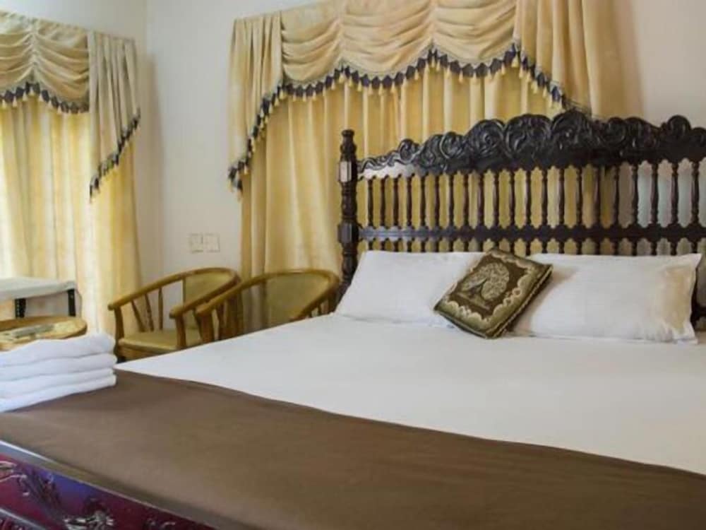 I picked this based on many favorable reviews, especially on Tripadvisor. The Standard Room I was in was very basic. A large King sized bed in a small room meant there was little room for anything else. A luggage rack or even a table in the small walk-in closet would have been useful. Decor is tacky and out of place, but I would expect that of most places in these parts. The sheets were thankfully clean. My main complaint was the noise from upstairs -- The upper floor is plywood, supported by I-Sections, so every bit of noise, including footsteps and chairs dragging were amplified many-fold and did not allow me to sleep. The quality of the in-house food is very ordinary, so I have to disagree with several reviewers who praise it. There aren't many options around, so you're stuck, and for the quality, the food is definitely overpriced. As for the bathroom, the toilet seat wasn't clean, the sink in there was cracked all over and gross looking. The mirror was half eaten away from behind. Overall, I rate this a below average experience.