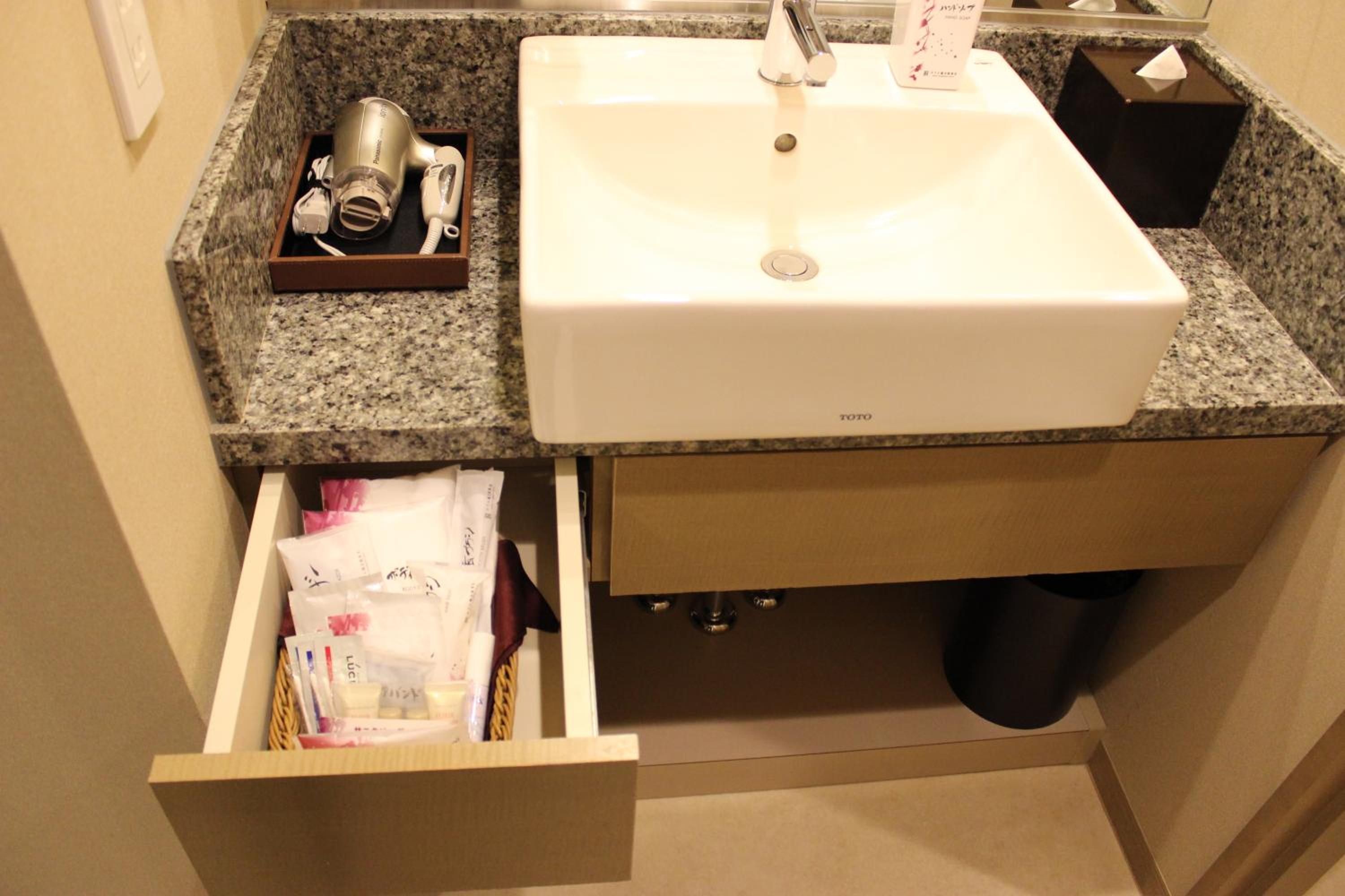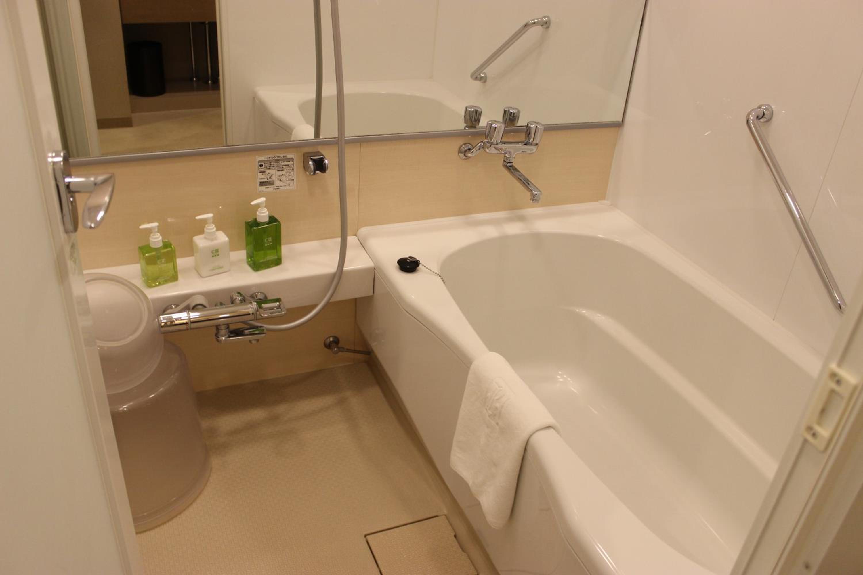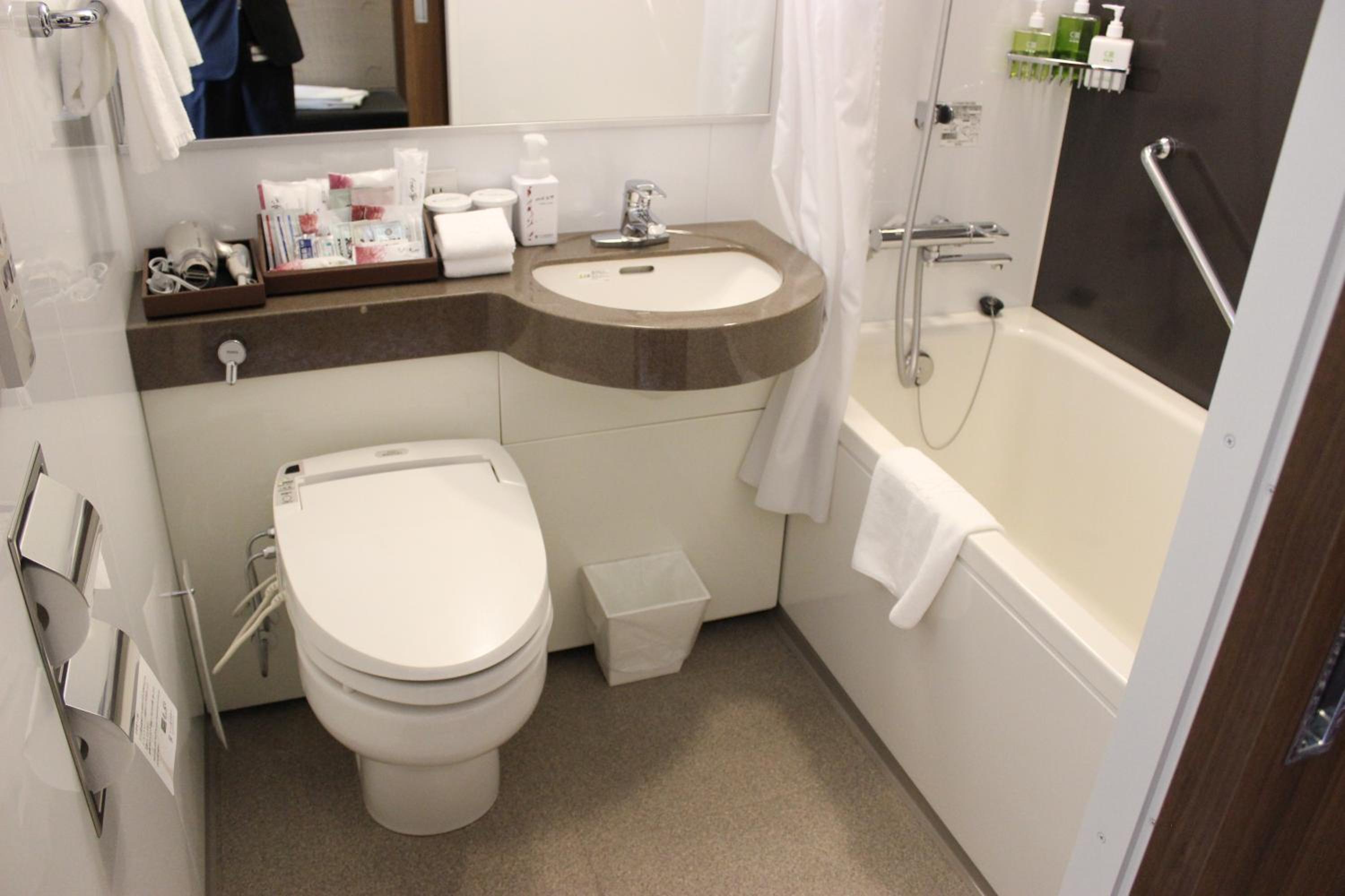 Good location next to Tokyo station and good bathroom facilities.