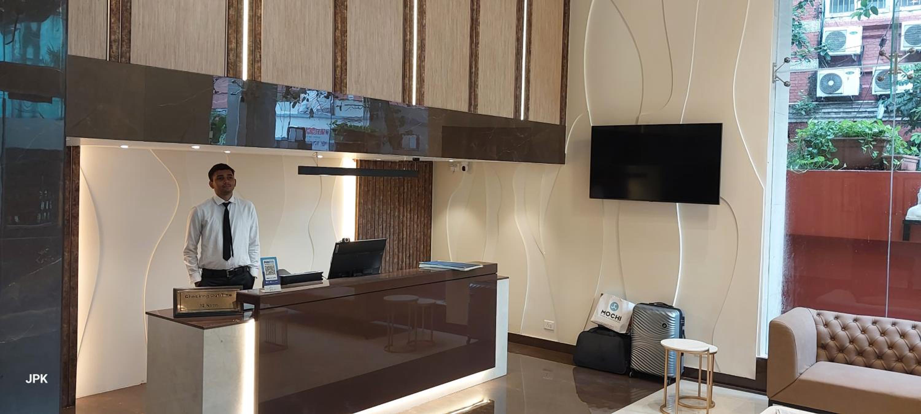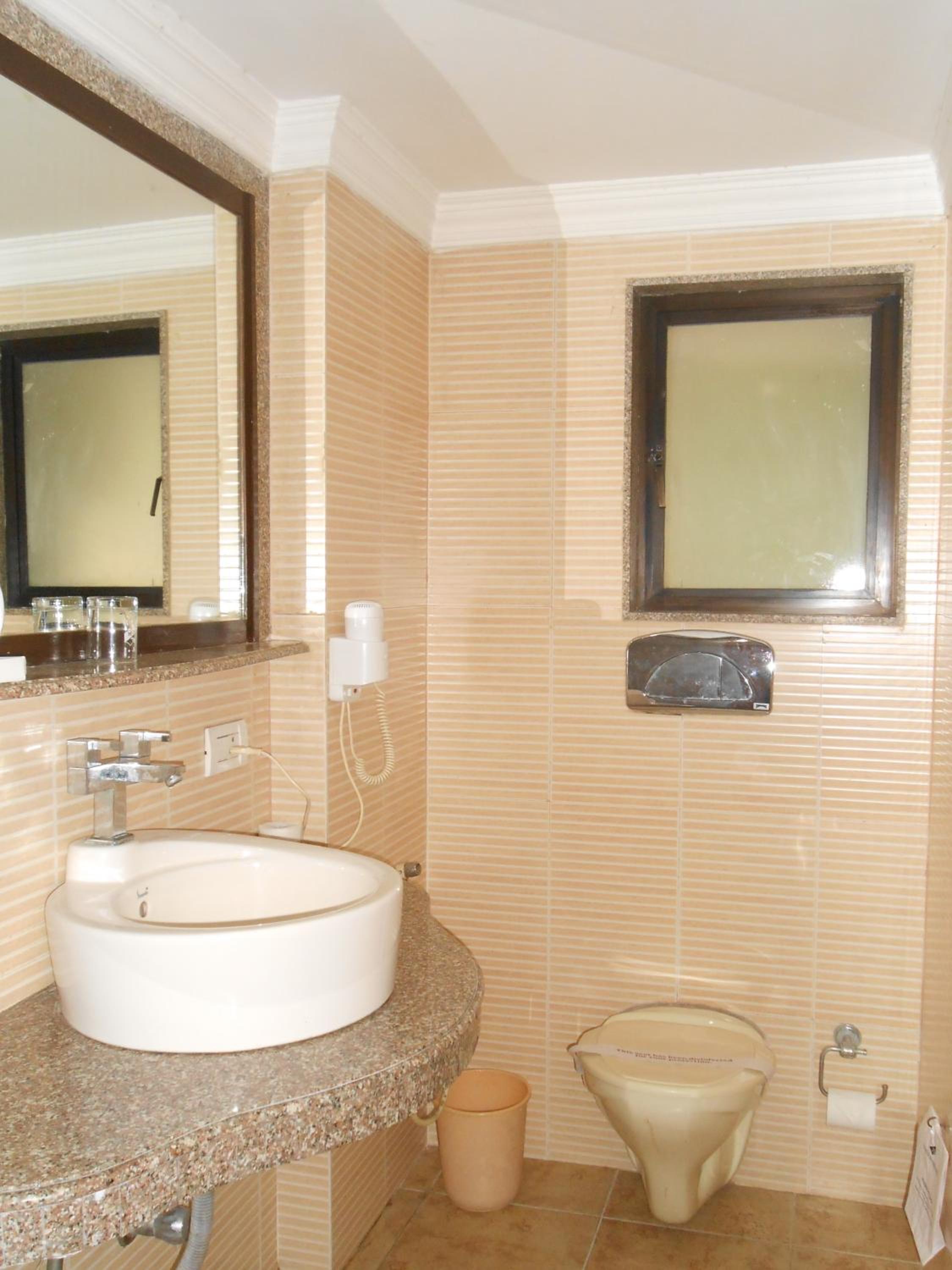 The windows in room were filthy on the outside ,same in the bathroom.add to that old cigarette butts.the bathroom was quite dirty.cleaning in India seems to mean a bit of a sink wipeout and thats about it.the tap ware and tiles walls were quite filthy.the whole bathroom needed a good scrub using decent cleaner..i noticed the room next to mine which was a service room where cups etc were washed for the rooms ,was filthy..(picture supplied)large greasy stains around the splash back .makes you feel sick when you think your cups etc will be cleaned here..also there was an issue as there were often staff coming and going from this room.talking loudly,calling out to each other from the room with the door left permanently open..until i read the riot act and they quietend down..the service generally is ok.just the cleanlyness falls short.not uncommon in india.