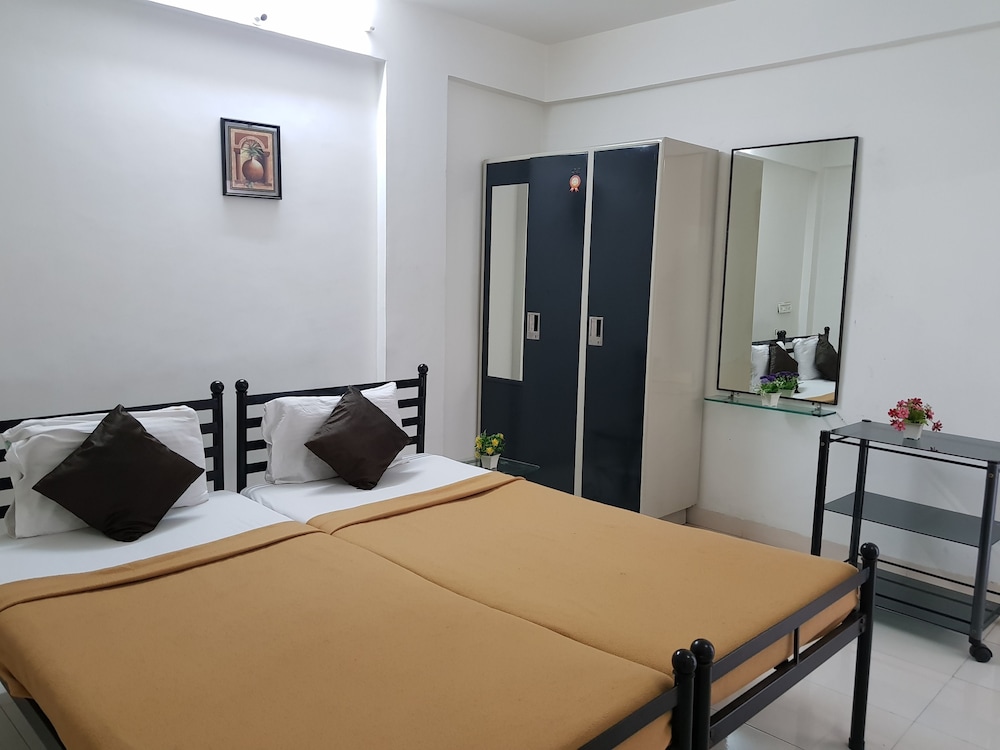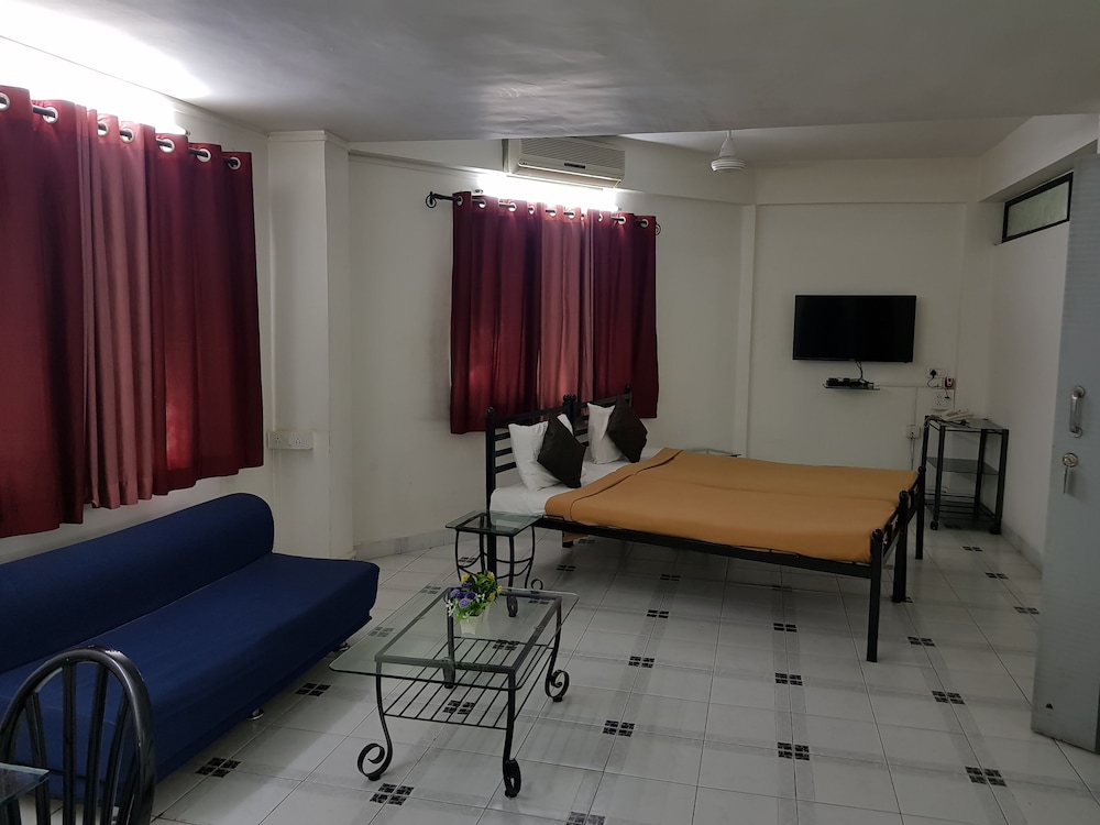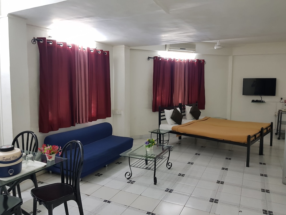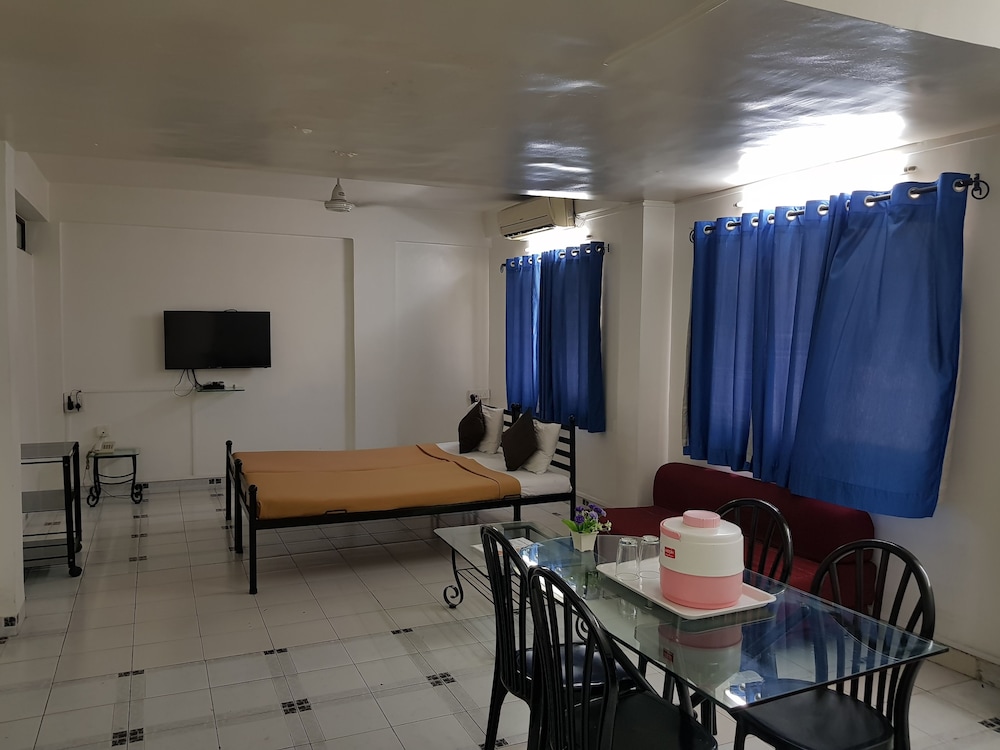This is a nice service appartment. The place is close to the airport. If you are coming from Pune railway station the auto fare as of July 2012 was around seventy five plus like twenty rs over meter coz they are just not ready to go there. The place has pleasing staff at the lobby. There is no room service as such. There are small grocery stores and restaurants nearby. Being a veg guy i had to walk maybe 1 km to get to a hotel which was decent. They provide bread and tea and pohe for breakfast. The standard ac room had a tv and clean washroom and clean sheets and overall clean feeling. i liked my stay and overall if a person has some work near the airport like i did it was a good bet. Their lift was not working :P. Power socket was loose little bit things here and there. The only problem is accesibility. Getting around and all.