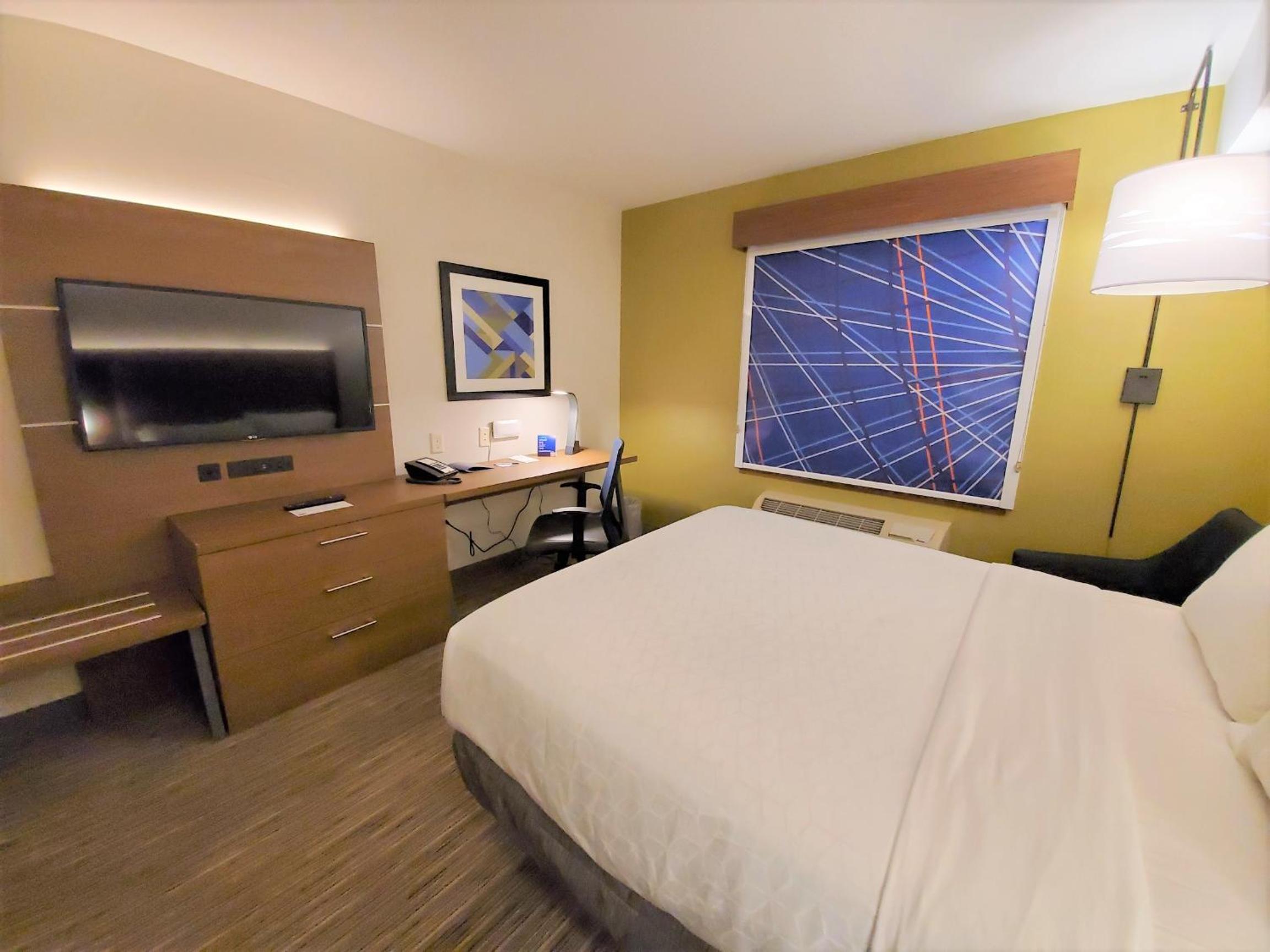 Lodging here on Jan. 1 and Jan. 6 were two completely different experiences. On Jan 1, the reception was cheerful and smiling, and the same person the following morning was very cheerful when I left. This is an old and tired HI Express with a very slow lift, and otherwise typical HI Express services, some of which do not happen at this property: the warm cookies each evening, real soap, add-ins for the oatmeal, etc. These must be money saving moves for the hotel.