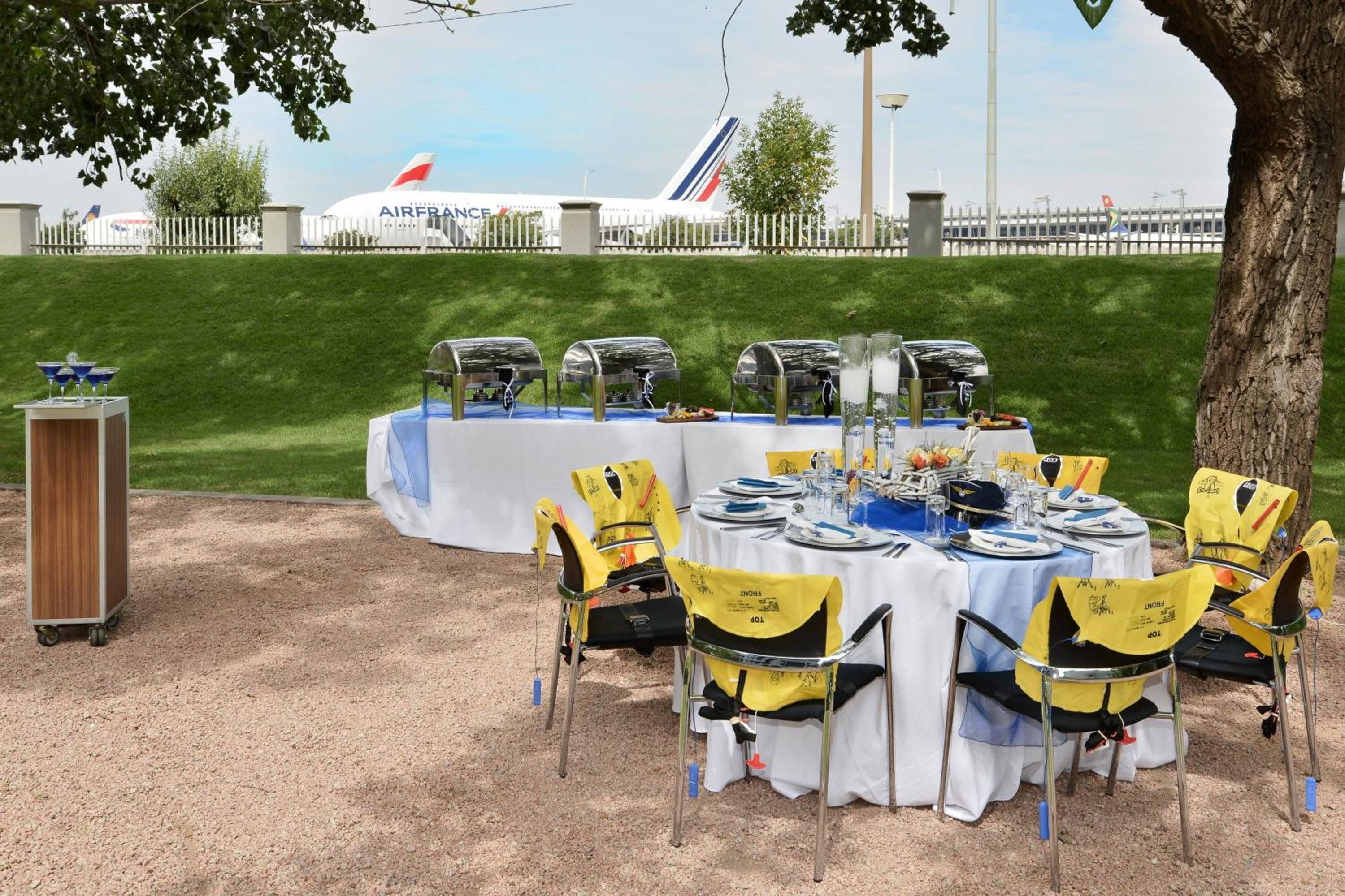 Experience luxury in the aviation-themed rooms equipped with modern amenities such as satellite TV, work space, and blackout curtains. The suites offer a spacious seating area for added comfort during your stay.