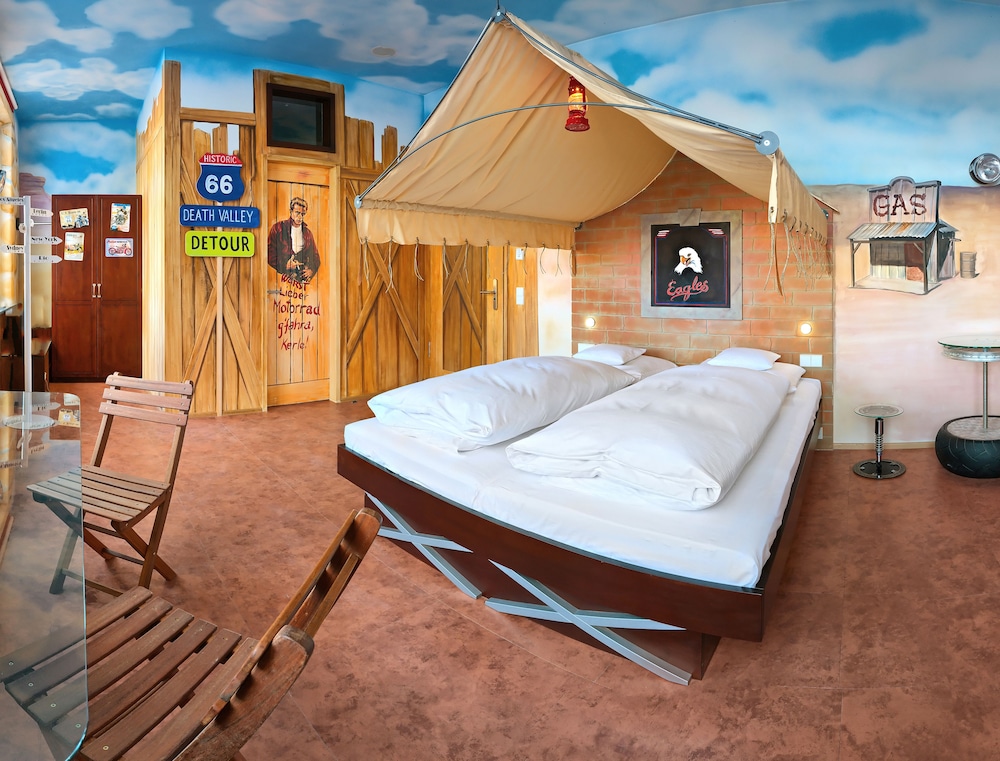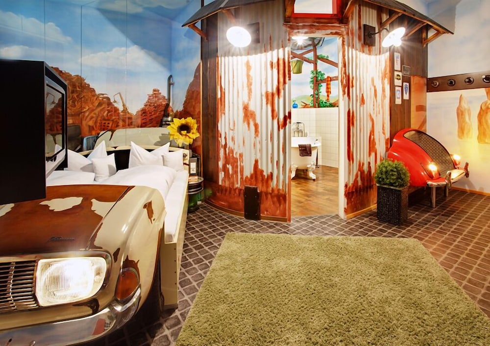 Unique place to stay at with car themed rooms.