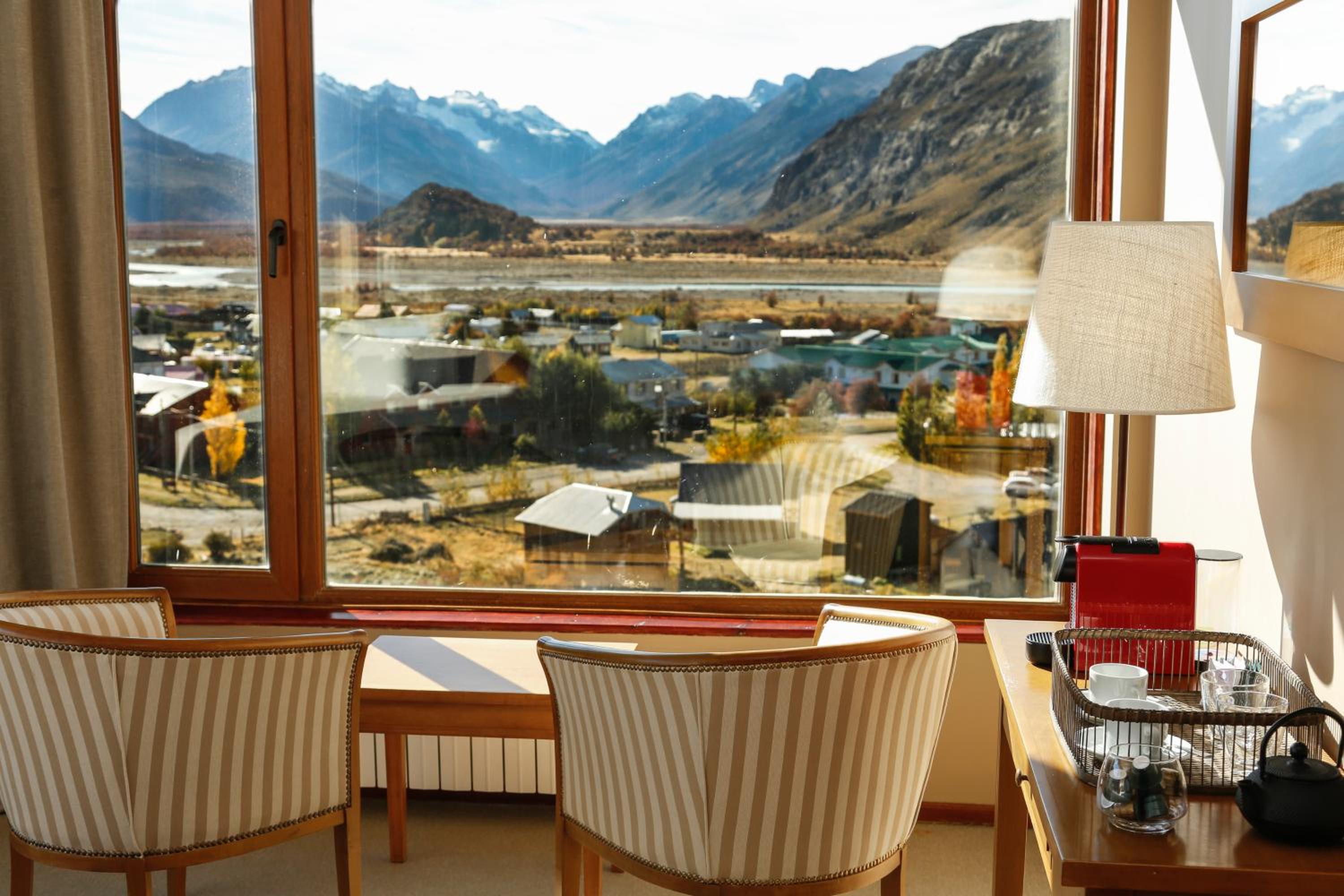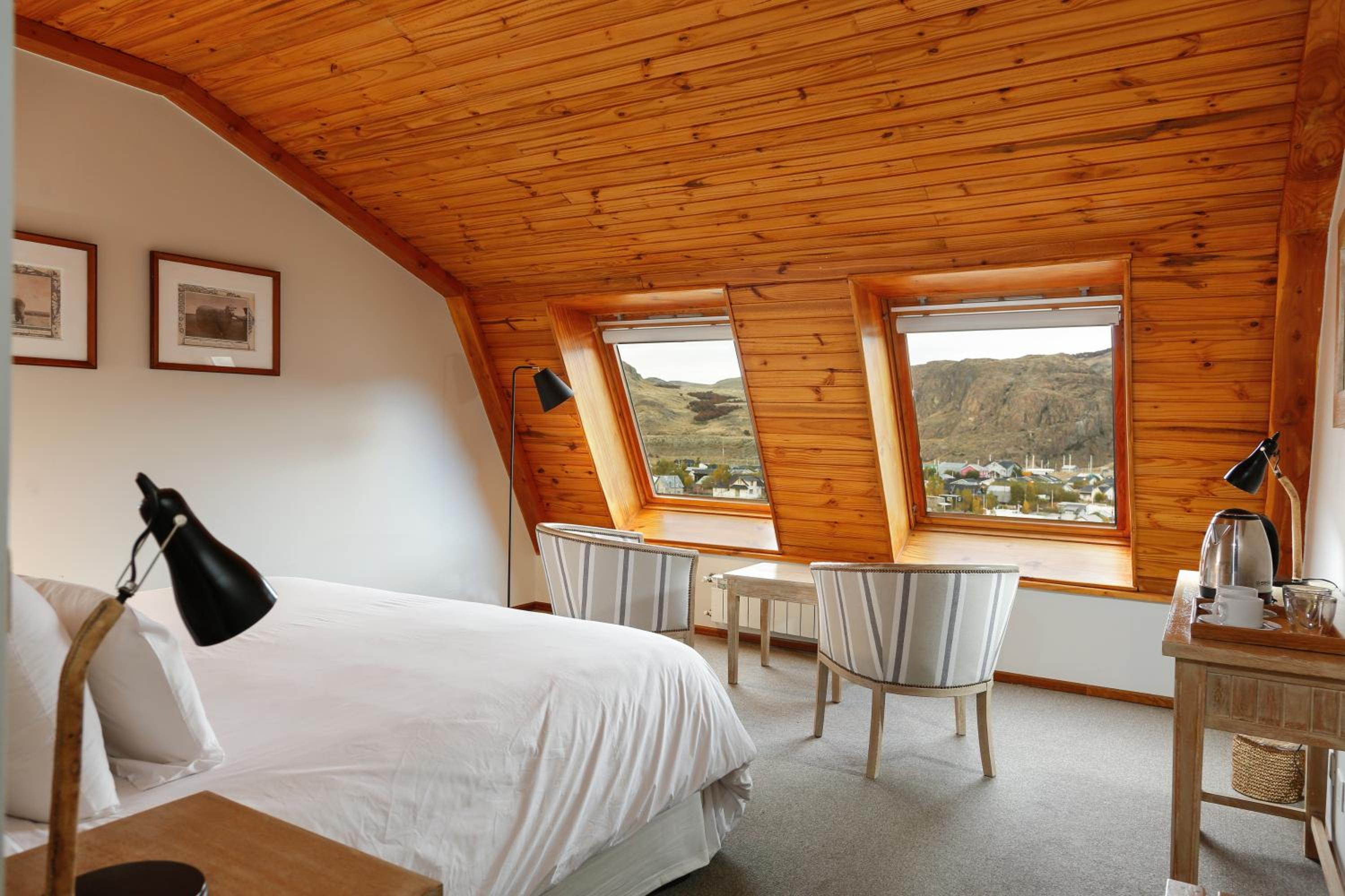 Indulge in comfort and style with our rooms featuring a cozy seating area and modern en suite bathrooms. Let our tour desk guide you on thrilling hiking trips to Laguna Torre, Piedra del Fraile, and the stunning glaciers.