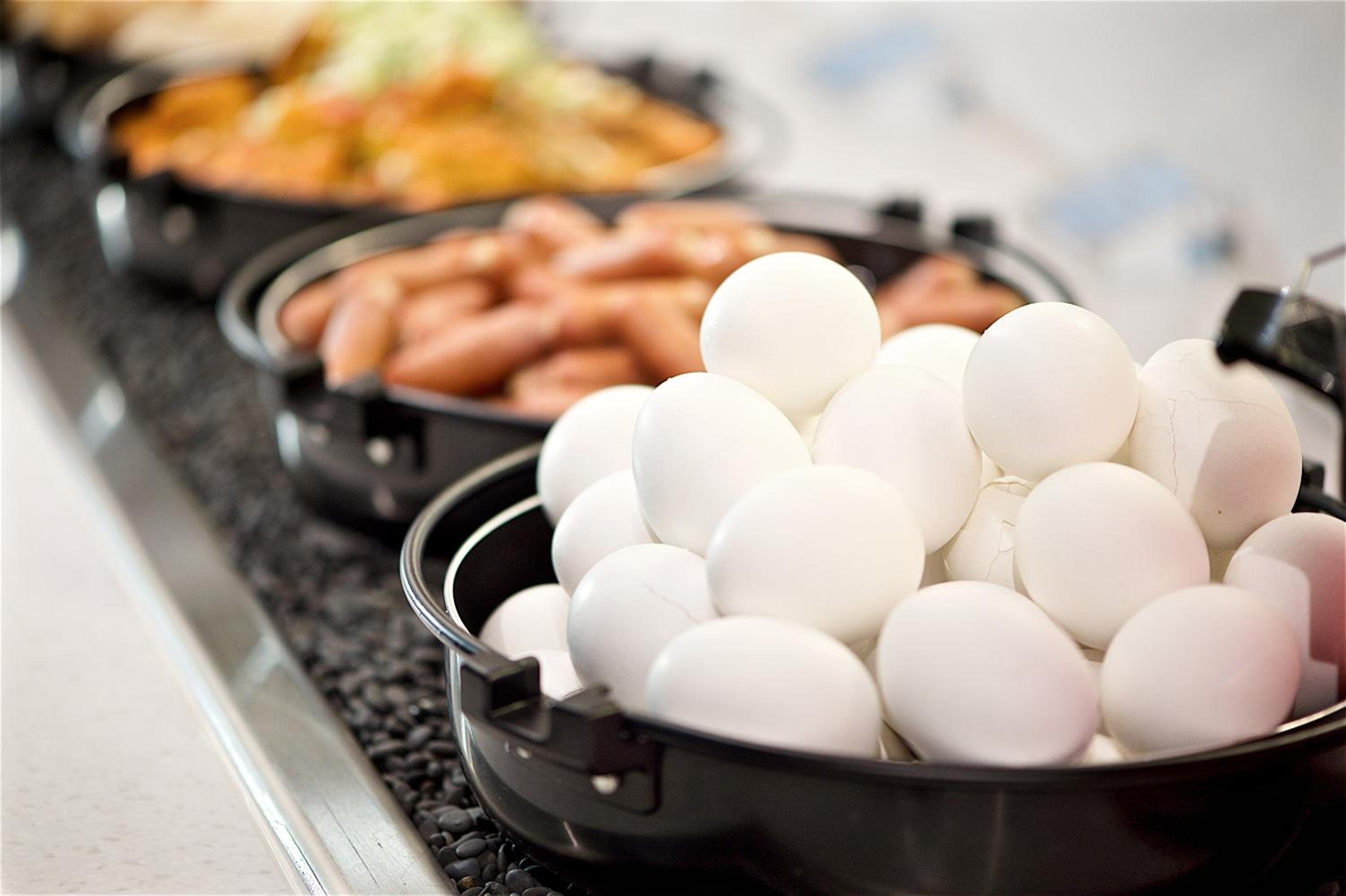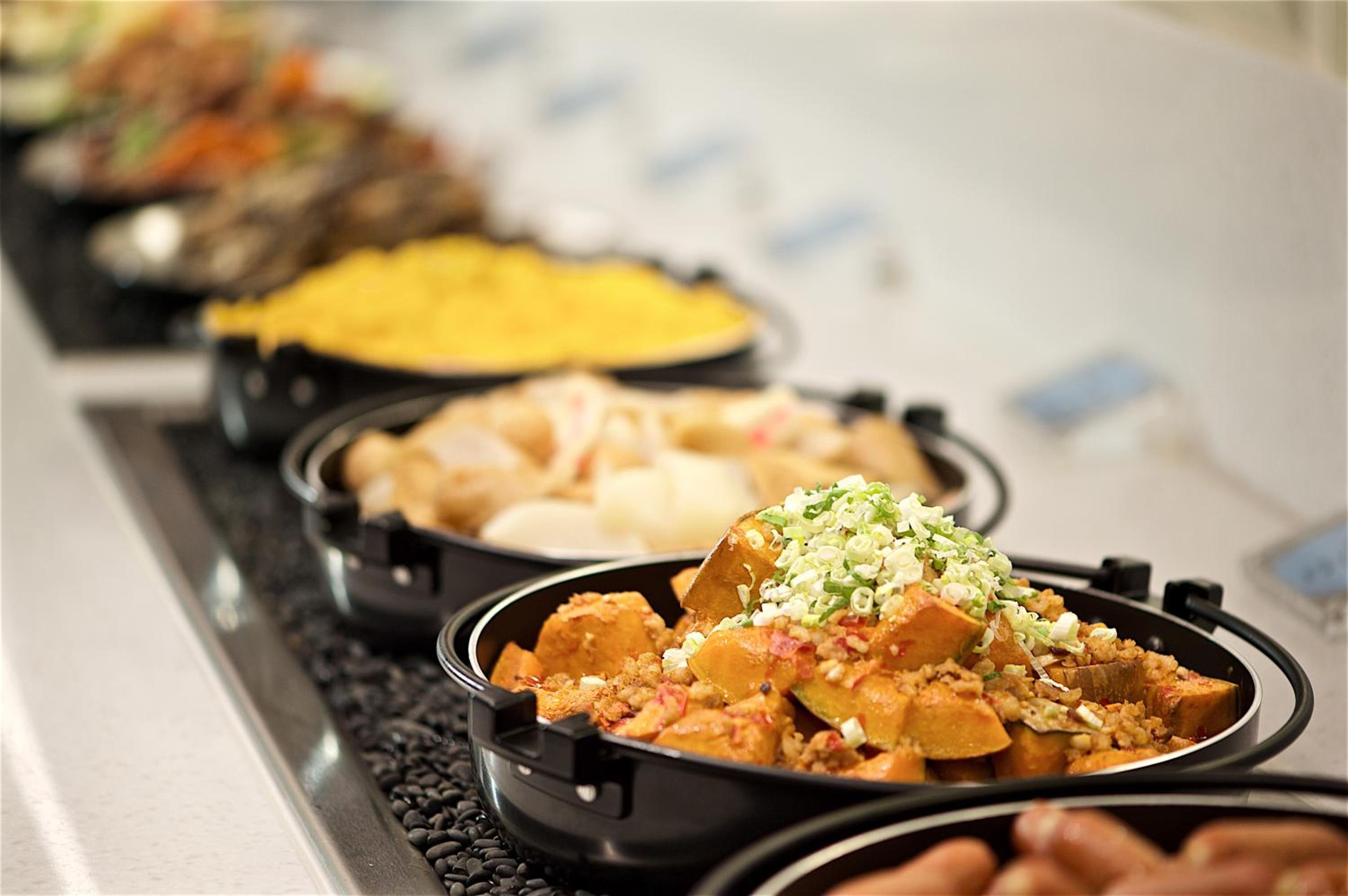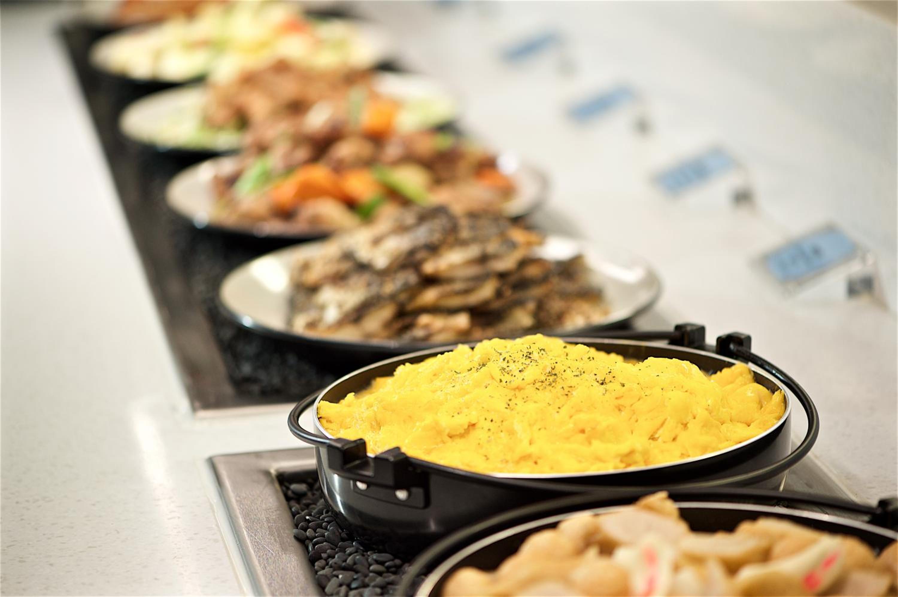 Start your day with a delicious organic breakfast buffet at Just Cafe, offering a variety of hot tea and coffee options.