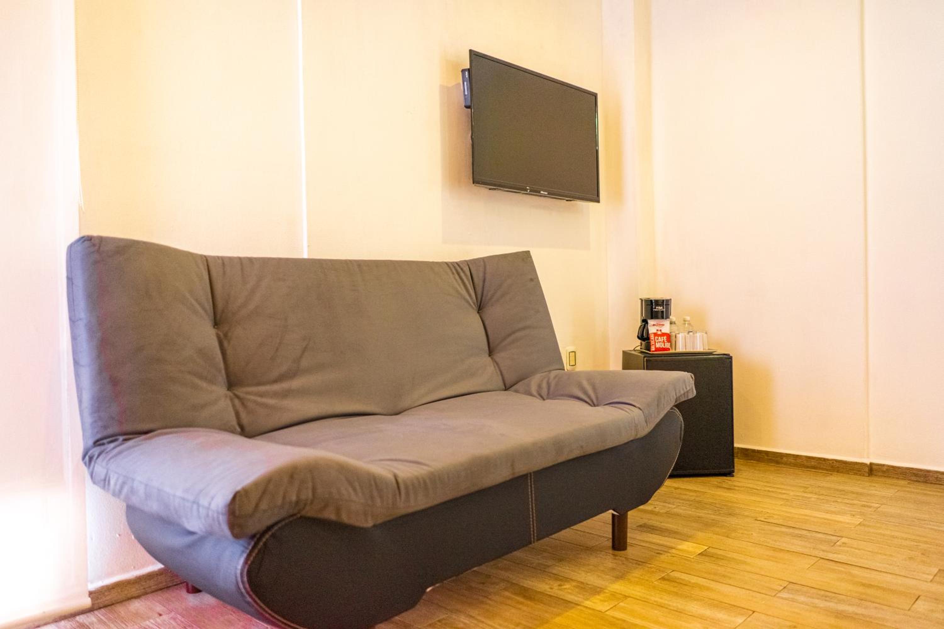 The bed was comfy, the tv was old and had dark lines throughout the screen, no fridge, no coffee maker and had no water a couple days