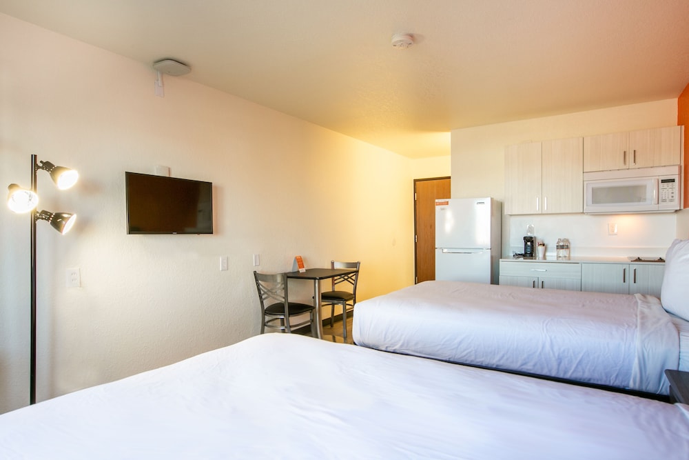 Unwind in one of our 18 air-conditioned rooms equipped with kitchenettes, full-sized refrigerators, and stovetops. Watch your favorite shows on the 32-inch LCD TVs, stay connected with complimentary Wi-Fi, and make free local calls from the comfort of your room.