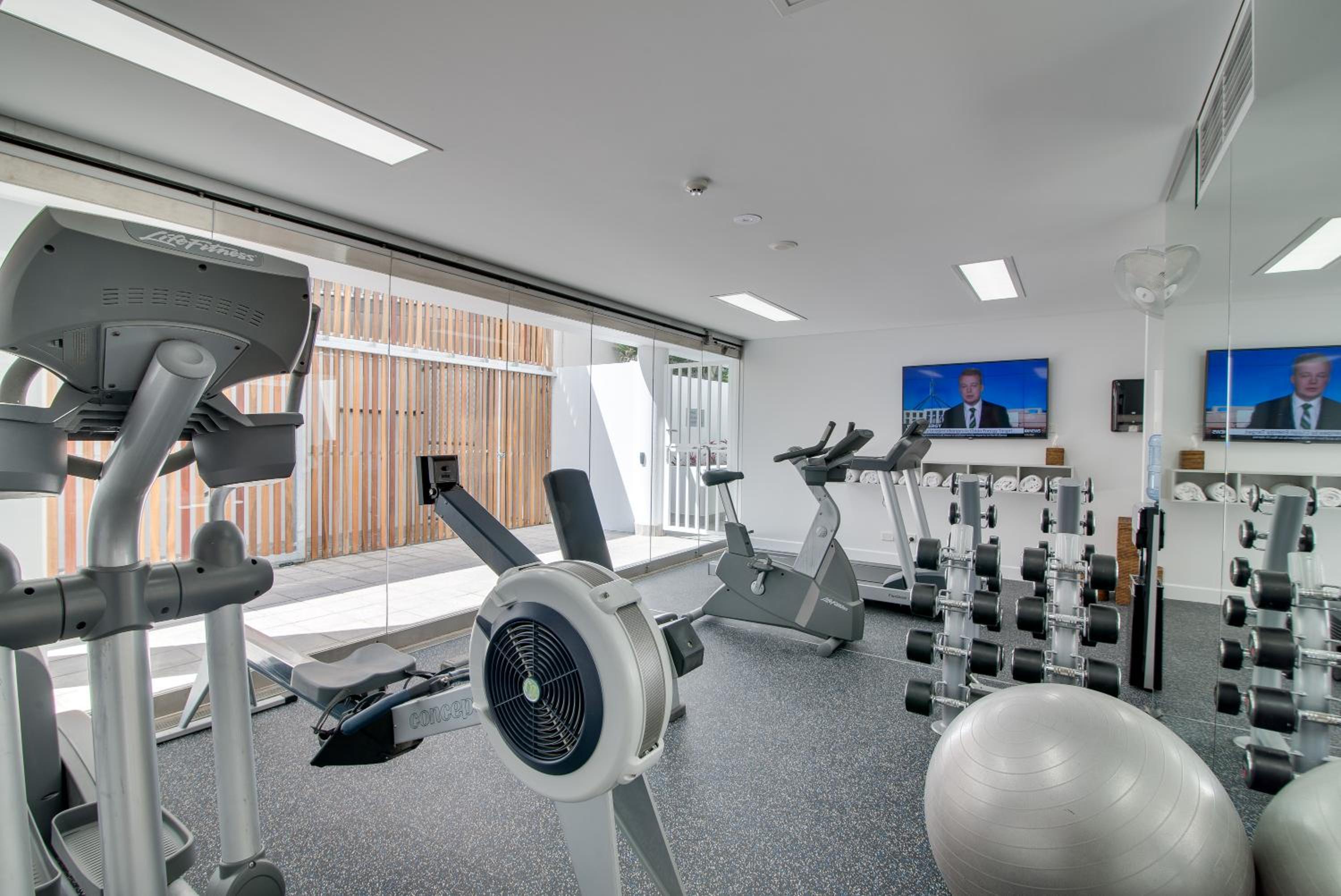 Enjoy the outdoor swimming pool and well-equipped fitness centre during your stay. The self-contained apartments are designed for comfort and convenience, complete with free Wi-Fi and flat-screen cable TV.