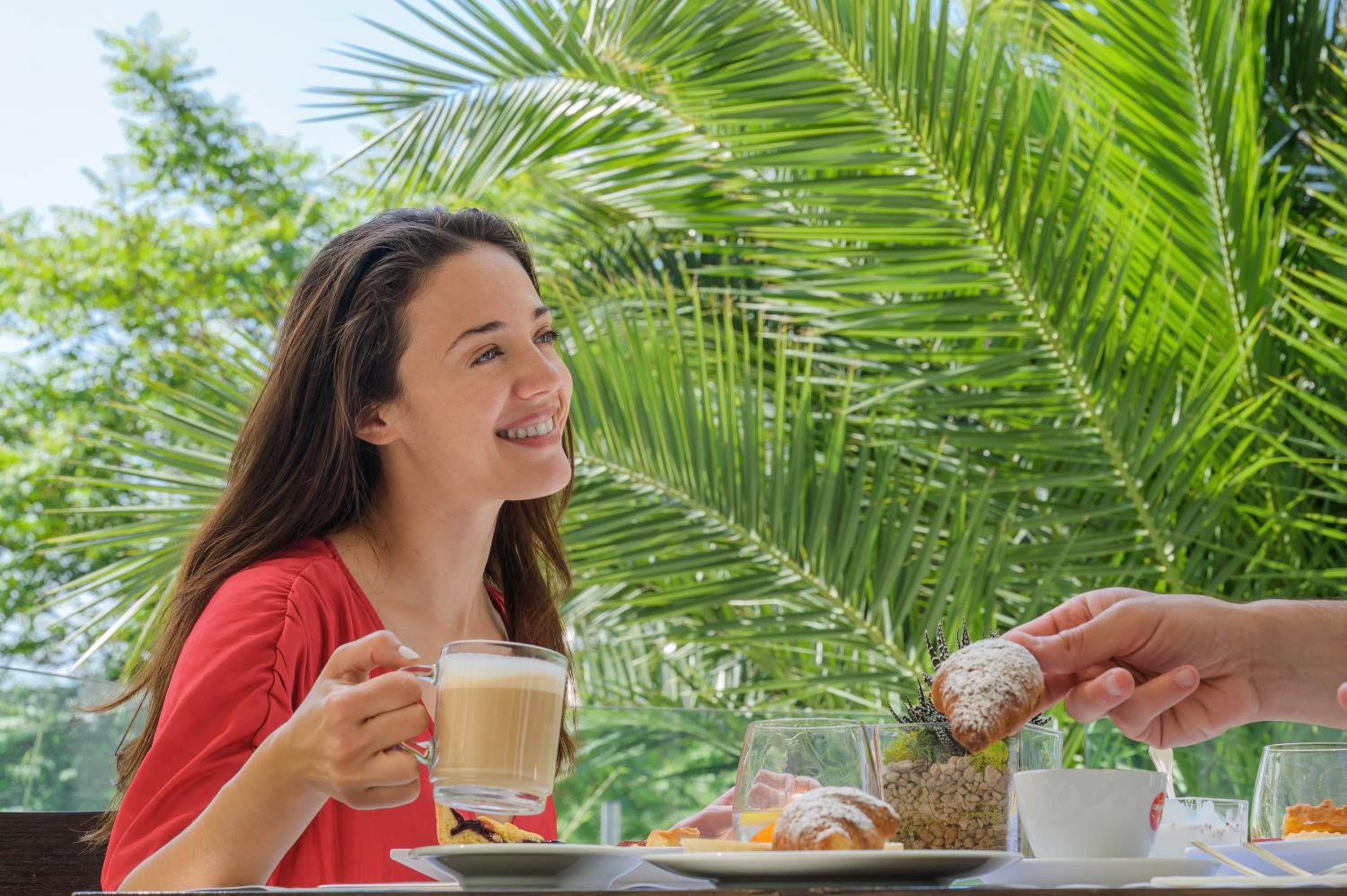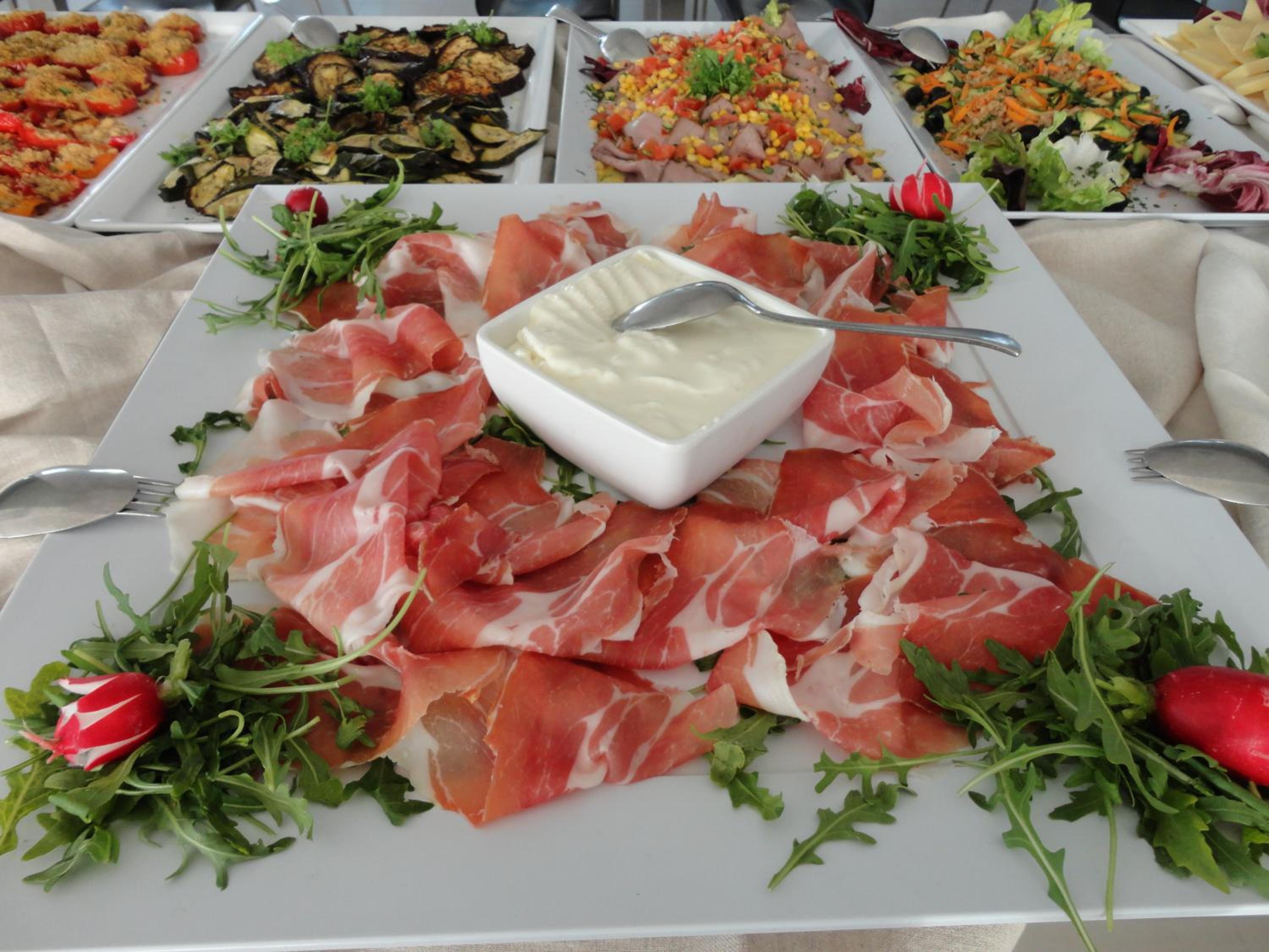 Start your day with a generous breakfast spread including scrambled eggs, bacon, and homemade cakes. For lunch and dinner, savor Italian specialties at the buffet restaurant. The elegant bar offers a cozy retreat with entertainment options like a film and book library.