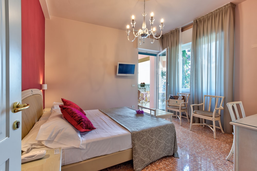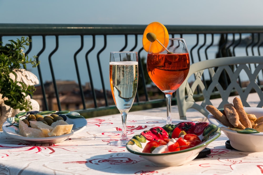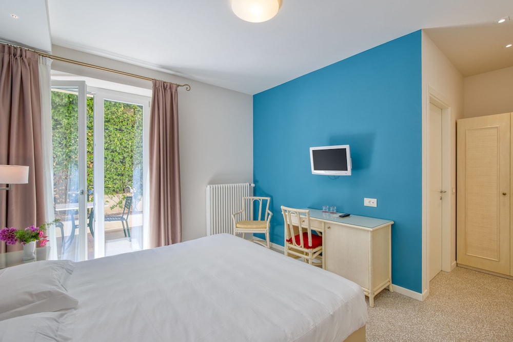 Fantastisk hotel med virkelig god morgenmad. Smuk udsigt over søen fra hotellets terrasser. Poolområdet ligger i en have med oliventræer og citrontræer, hvilket giver en rolig og svalende atmosfære.
