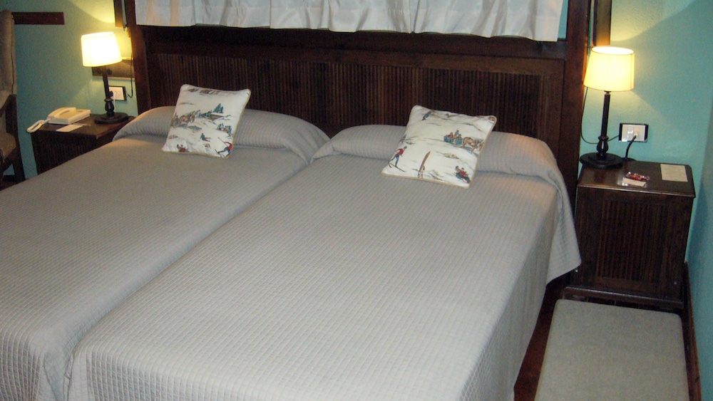 This hotel is very rundown, despite its rather expensive price tag, it’s really only a 2 star. It badly needs money spent on repairs and refurbishment. The male changing rooms sauna was out of order, there was no ceiling light in our room, instead there was an uplighter, but the plug was half broken and unsafe and therefore could not be properly inserted, meaning the light kept flickering or going off completely. One bedside reading light was broken and left hanging downward over the pillow, making it useless in an already dark room with 2 tiny windows.! Wires were exposed and unsafe. The furniture was stained, the walls chipped in many places, the bathroom & furniture outdated. One of the closet handles was partially broken and hanging loose. The check in staff rather unprofessional. We weee told we could not have breakfast (which we’d paid for as an extra) until 9:30am, which was too late to then go skiing, so we were told to order it to the room, but no menu was given to us and the check-in staff forcibly chose for us. We were told we’d be charged again to face it delivered! As it happened, breakfast was late and one of the two couples ended up eating it in the restaurant after all, though the staff there were very rude to us, despite 2/3 of the tables actually being empty!
