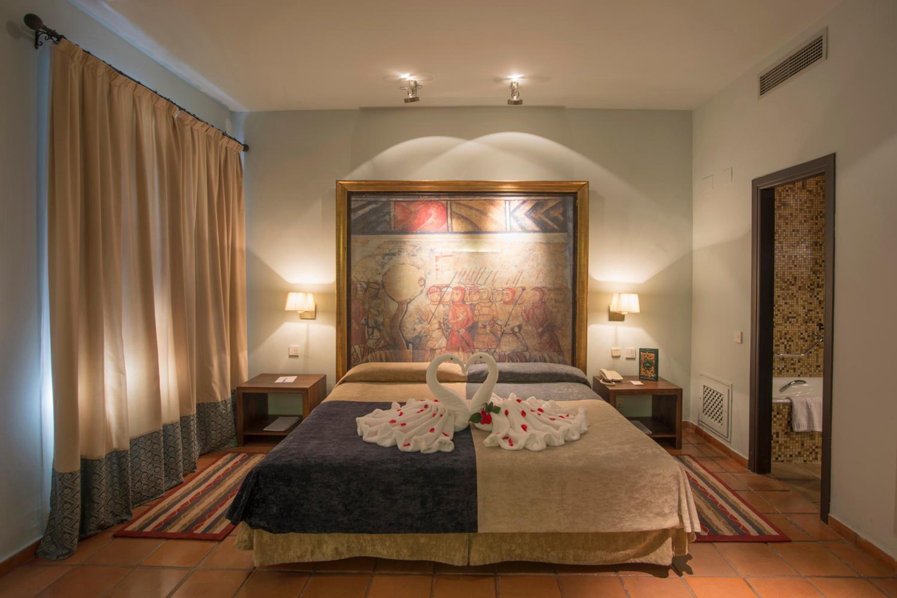 Our room was huge and elegantly decorated. The hotel itself is castle-like, with an internal courtyard where you can dine. We were only here one night and did not eat at the hotel, so cannot comment on the food but the staff were friendly and professional and our stay luxurious. Trujillo is a charming, traditional Spanish town with an historic central square around which are dotted a few restaurants. The castle at the top of the hill overlooks the town and is well worth a visit. It gives panoramic views that stretch for miles in all directions.