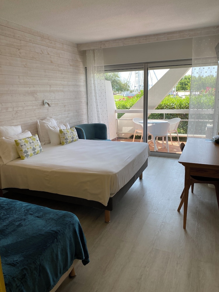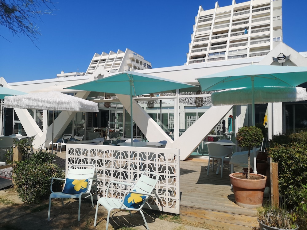 Certainement l’hôtel le plus agréable de la grande motte. Sans étage, les chambres bénéficient d’une belle terrasse avec vue sur un petit parc et sur une aire piétonne longeant la mer. Accès direct aux restaurants, commerces et lieux de promenade. Grâce à son parking gratuit, une fois arrivés à l’hôtel, toutes les découvertes se font très facilement et agréablement à pied, jusqu’au port. Les chambres sont spacieuses, rénovées avec beaucoup de goût, très propres. La literie est excellente pour passer une nuit des plus agréable. La salle bain est également très grande. En journée vous bénéficiez du bar de l’hôtel. Les consommations se prennent en terrasse dans la chambre où en terrasse commune . Le personnel est très souriant et à l’écoute de l’accueil au service.. à découvrir absolument..