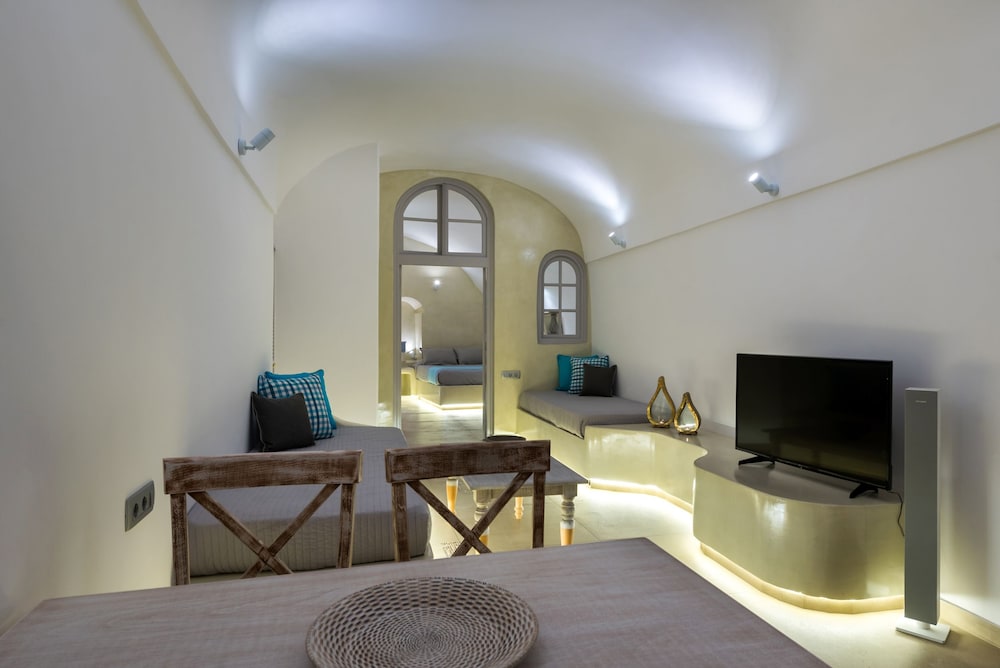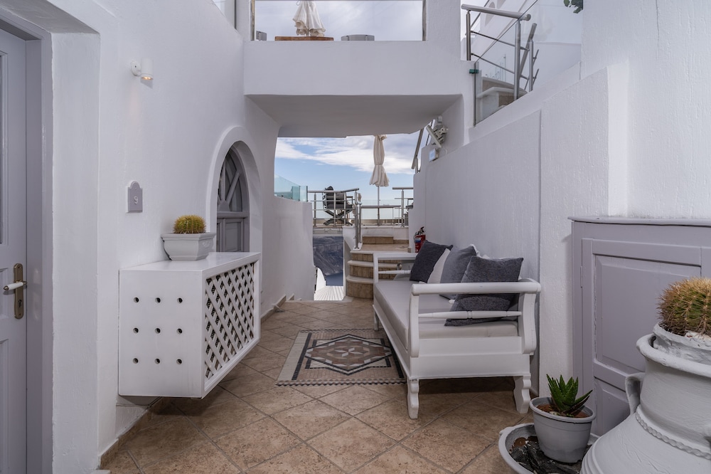 The staff are so lovely and friendly. View and location cannot be beat. 10 min walk to skaros rock, a very nice view point. Woudl describe as a honeymoon spot.