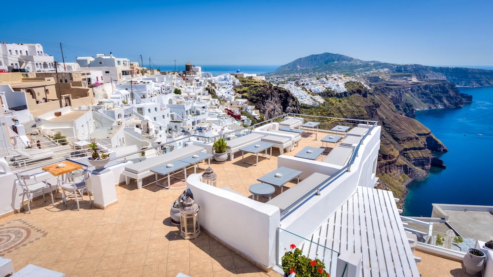 To add to that, the hotel has one of the best views of Imerovigli that you'll ever see in both the day time and the night time. You get a great view of the Caldera and the hotel itself is easy to access. Feel free to use their nice pool or sit and enjoy the sites. You're within walking distance of getting coffee or food. You're also not far from other places on the island such as Fira and Oia.