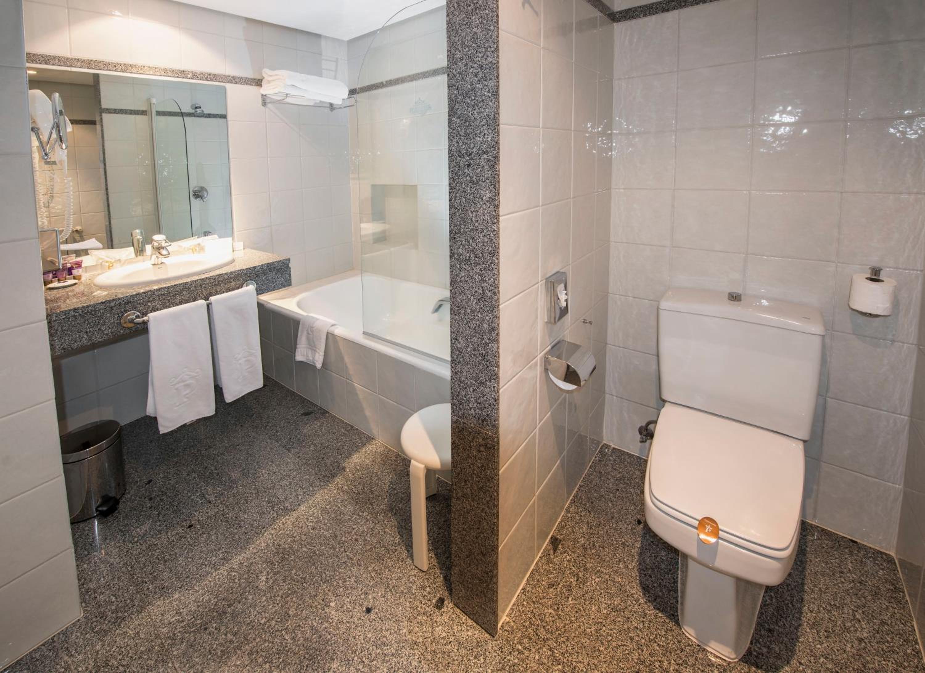 The bedroom was a very good size, with a nice sofa and relaxing area. It was great to have doors opening on to the garden, although the room was on the 1st floor. The bed was very comfortable with nice quality sheets. The wooden shutters make it very dark and it's so quiet so perfect for sleeping. The bathroom was also a good size with a shower over the bath. There was a wand or ceiling shower option. Toiletries were provided including conditioner. There were large cupboards with some full length hanging space and a safe. There was a desk if you wanted to work in the room. We hadn't booked the breakfast, but paid 20 euros each day for the buffet. You can also chose individual items which are separately priced. The staff offered coffee and there was a choice of several hot items, eggs bacon, tortilla etc included in the price. There was a great selection of cheese, meats, fruit. There was a nice selection of breads as well as little pots of jam and honey. A choice of pastries were too tempting every day! There was fresh orange juice as well as other bottled juices and even cava available. I had the decaffeinated coffee from the capsule machine as I found the fresh coffee too strong for me. We had the breakfast all 3 days of our stay because it was so good, but also there was not many other places open here in March. It is a lovely historic building and in a good position near the walls. We also enjoyed the bar service during our stay, and thought the prices very reasonable. We had one meal in the dining room and everything we ate was very good.