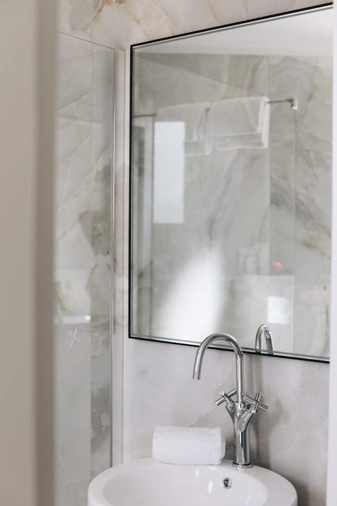 This property.is in the oerfect location but there is almost no parking for guests. Communication with staff eas poor as they failed to explain that in advance and were vety rude both on the phone and upon arrival. Room.was extremely small with no night tables and cleaning was poor. Toilet was dirty upon our arrival and cleaners forgot to give us towels. The bar on the top of the hotel is fantastic and the service and food up there great. Also there are many steps to get to reception so anyone with mobility issues cannot get into hotel.