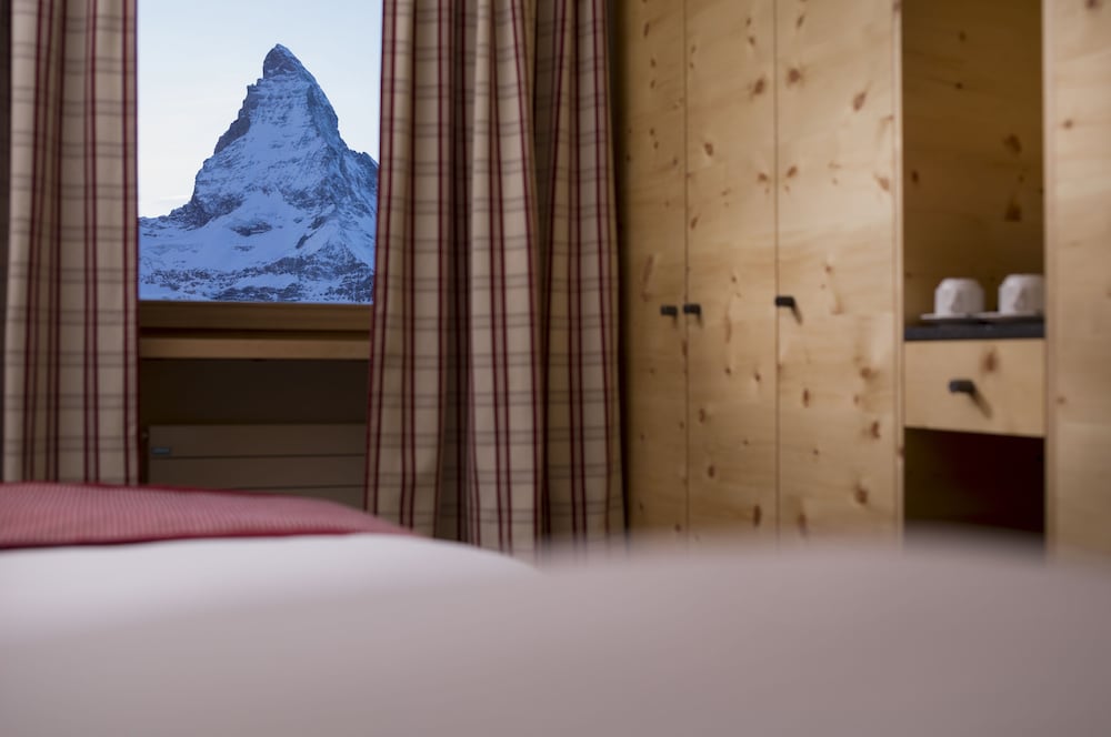 The hotel is magnificently perched on the mountain facing the Matterhorn. The vistas are incredible and access to skiing could not be easier! The ski room has boot heaters that dry your boots every night and warms them for your feet in the morning. The spa is also beautiful with a sauna that looks out at the Matterhorn. Rooms are thoughtfully furnished and showers are incredibly hot. The hotel was clearly fully renovated but retains its historic charm. The staff are extremely helpful and knowledgeable. Julie was particularly friendly and helpful, assisting us in organizing staff to help move our luggage and helping us extend our stay. The chef and waitstaff made us feel right at home. All in all we had a terrific trip!