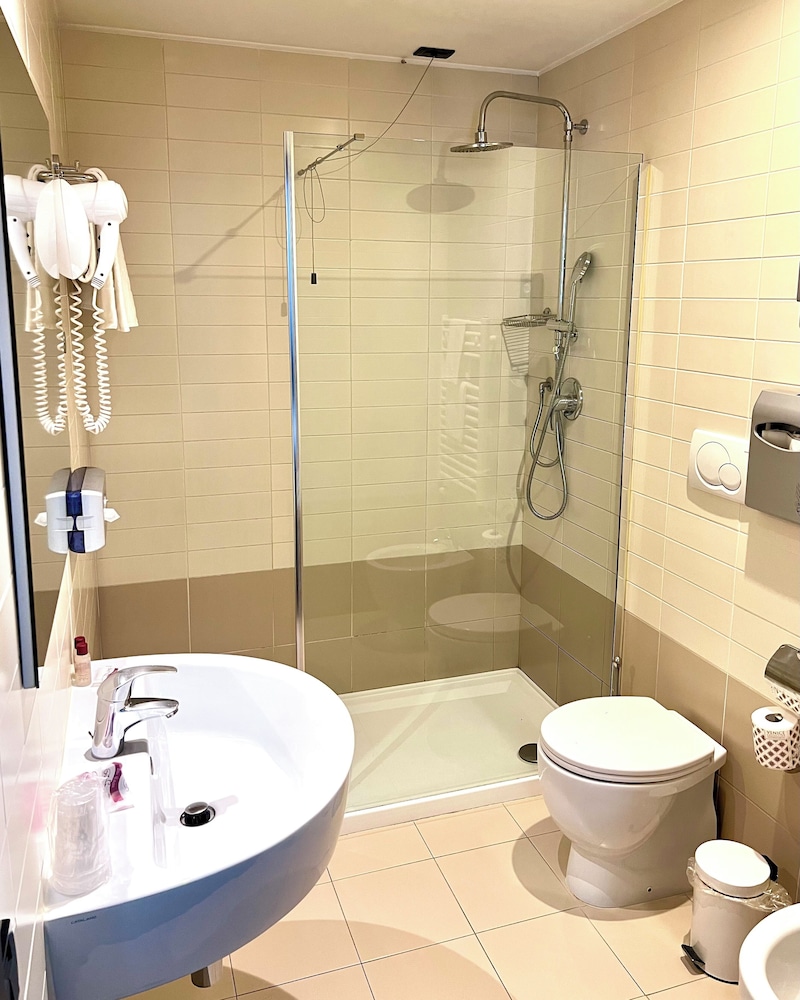 Since breakfast wasn't included in the price, I was hoping to at least have an electric kettle in the room for teas and coffees but there was none available. However, Mrs Ina was absolutely amazing at accommodating our needs and helped us getting hot water in a pot. She was very kind and helpful and I would surely recommend this hotel for it's good links to Venice, convenience shops in the area but especially for the hotel staff being friendly and helpful. The room was spacious and so was the bathroom with all amenities required.