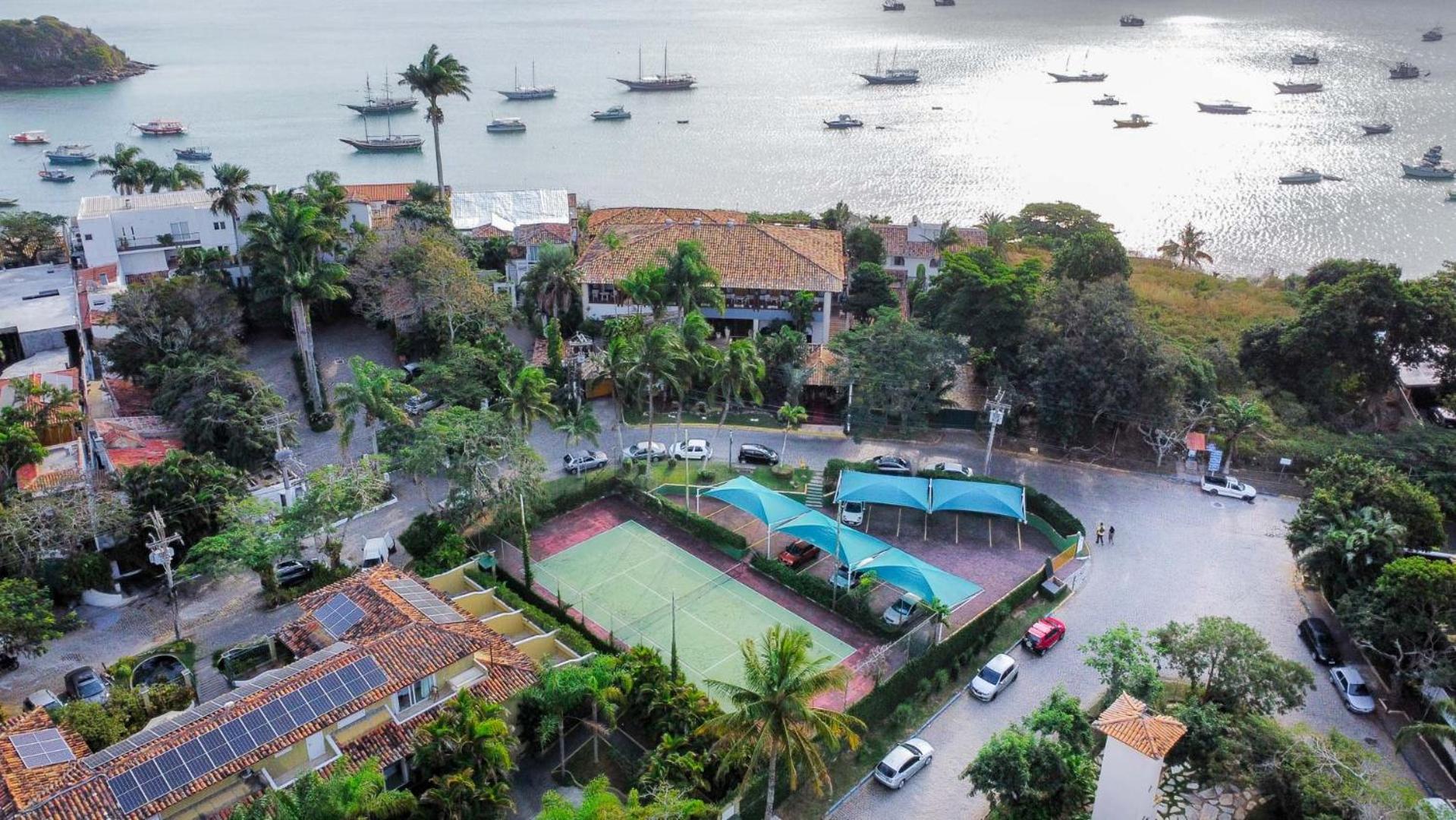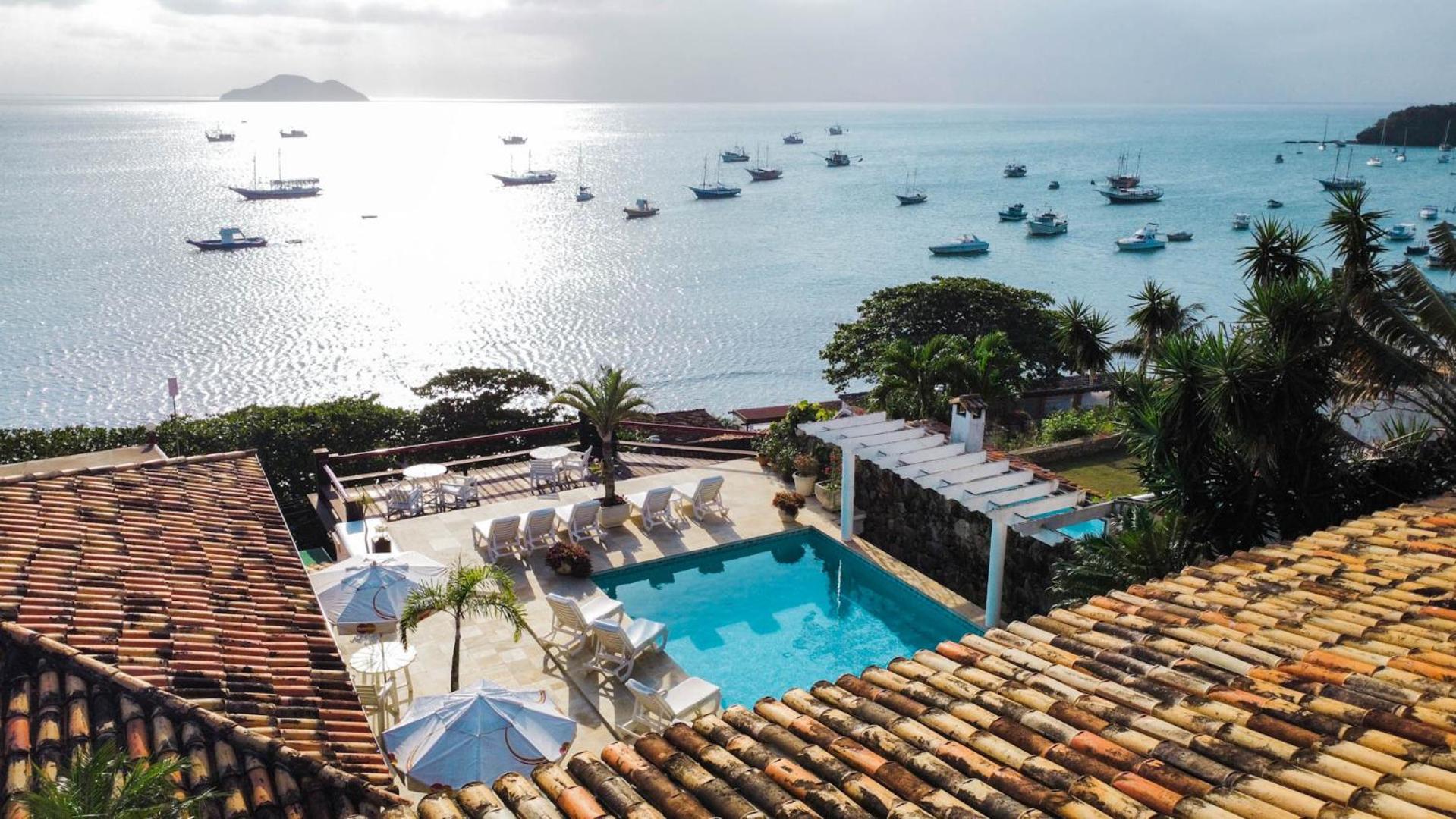 Hotel El Cazar, nestled in the upscale Alto do Humaitá neighborhood of Buzios, offers stunning panoramic views over the bay. Unwind in the hot tub and sauna, or soak up the sun by the outdoor pool while enjoying a refreshing drink from the poolside bar.