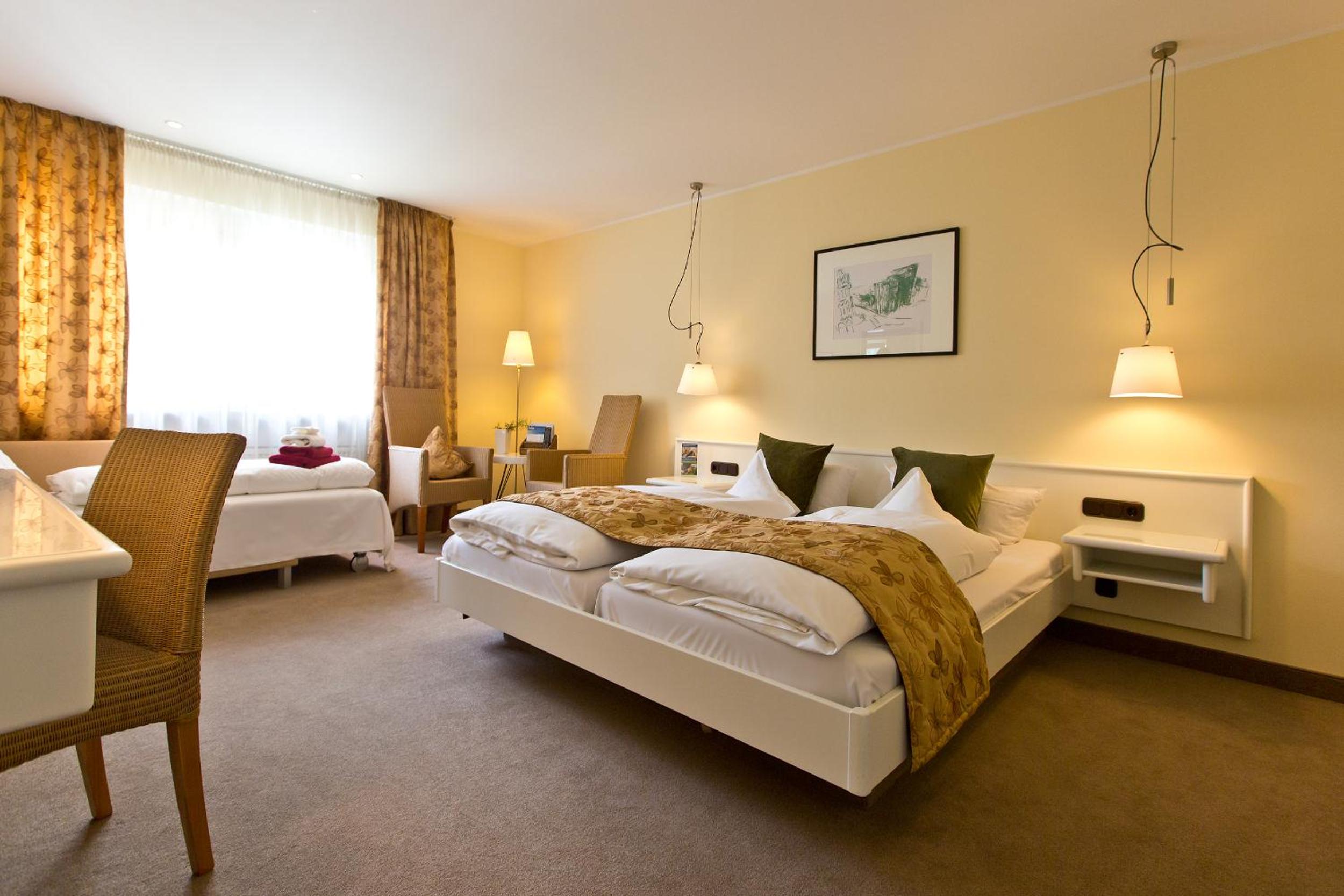 Das Zimmer war gut eingerichtet. Das Bad, das Zimmer und überhaupt das ganze Hotel waren "Pieksauber". Das Frühstücksbuffet war übersichtlich und abwechslungsreich bestückt. Auch bei größerer Gästezahl wurden stets frische Platten und Eierspeisen nachgereicht. Der Hinweis einer Receptionistin war hilfreich, dass für Bahnreisende der Bahnhof Trier-Süd (1400m) näher am Hotel liegt als der Hauptbahnhof.