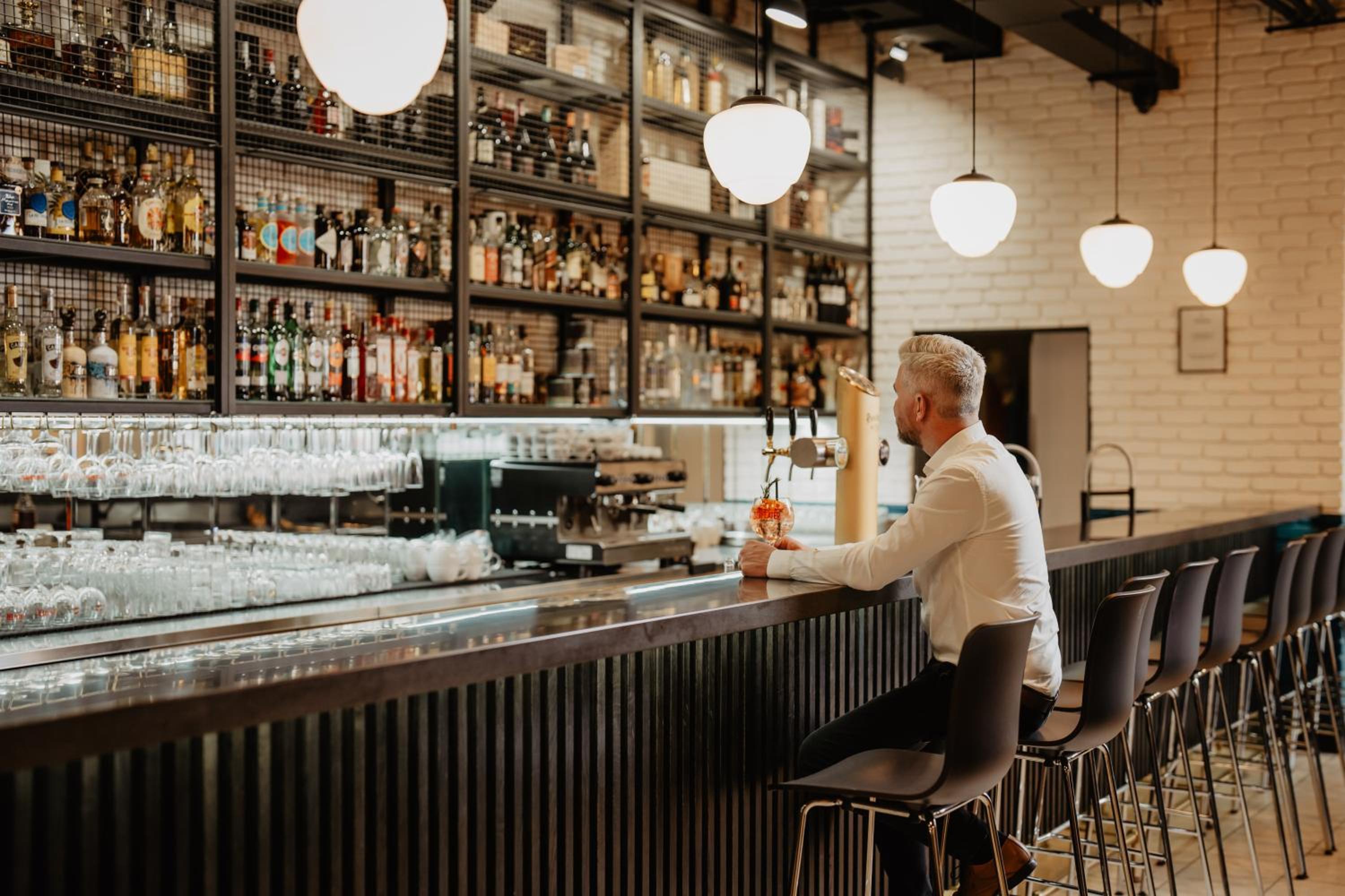 V hotelové restauraci jídlo podprůměrné kvality. Drinky,pivo,barman v pořádku.