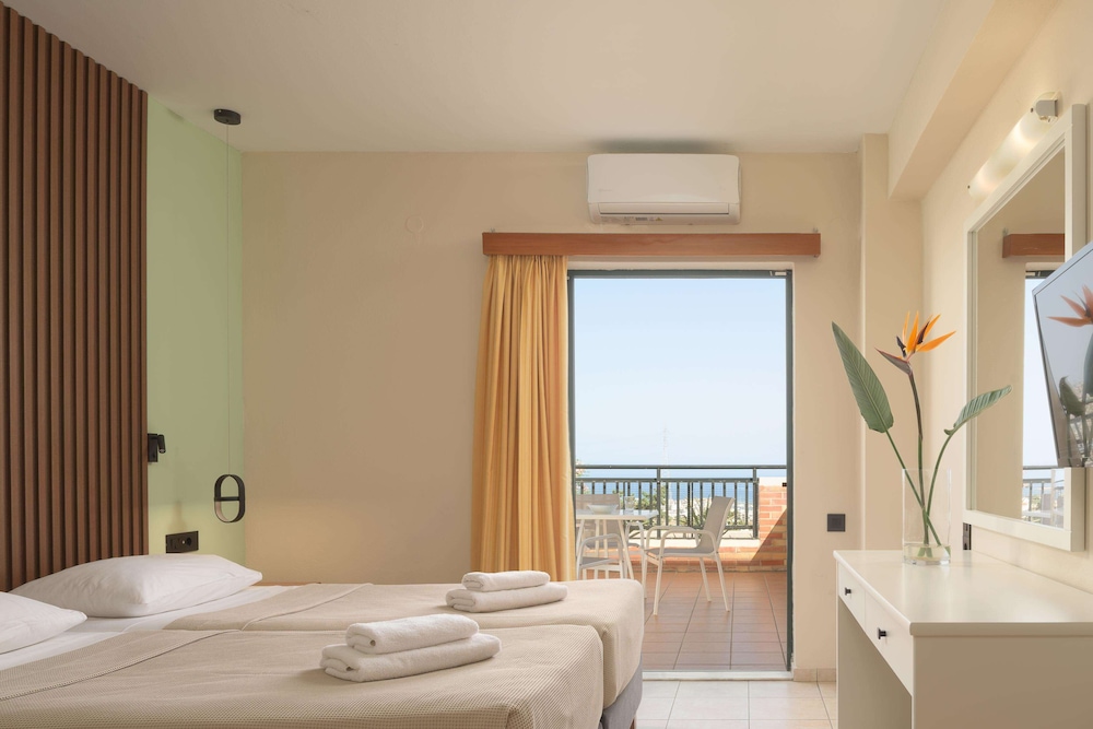 Asterias Village went above and beyond by upgrading our room. They remembered our first visit and surprised us with a beautiful balcony room overlooking the pool, which we truly did not expect. The beer was great, the weather was hot, and overall the stay was fantastic.