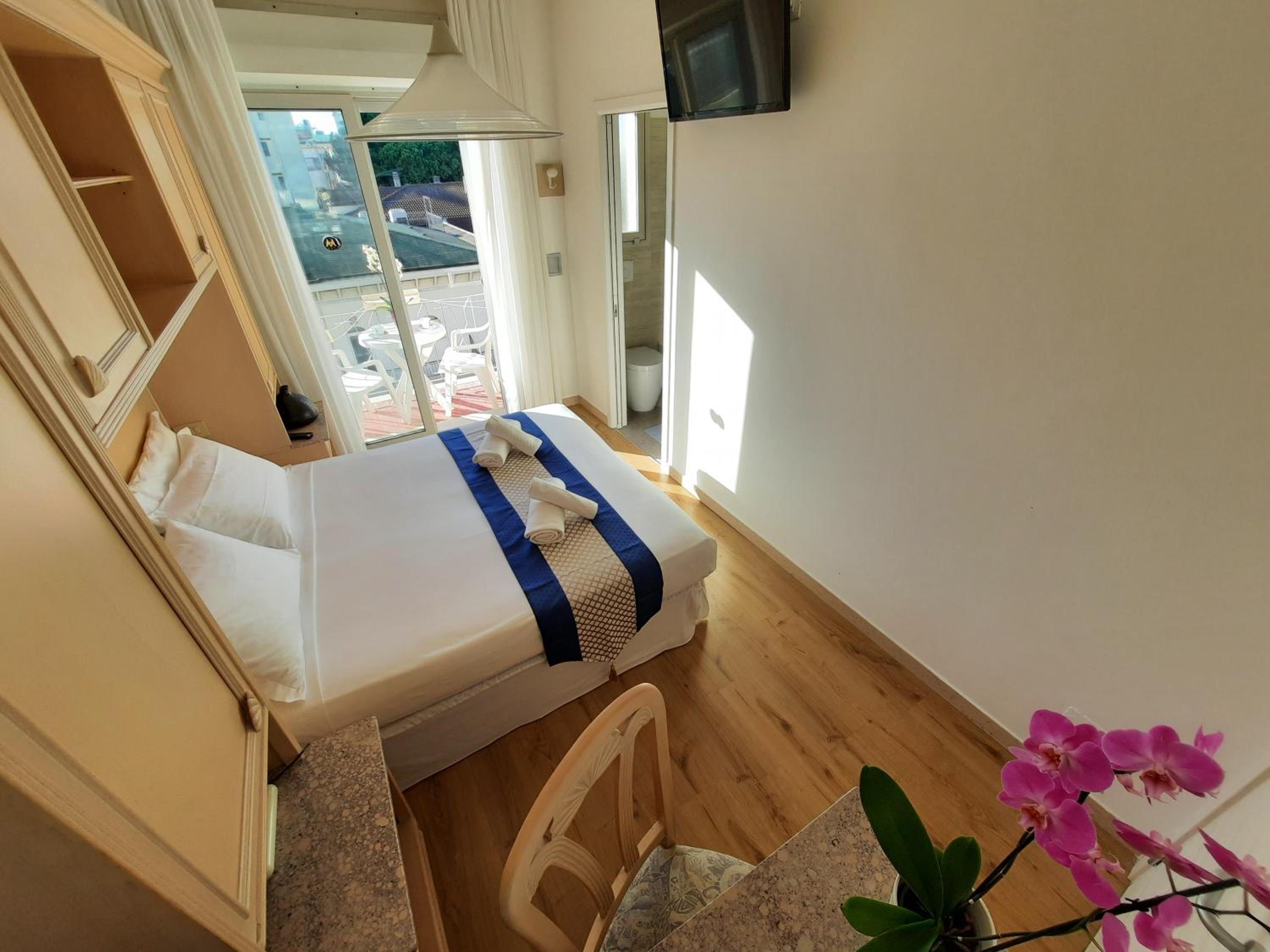 Vicinissimo alla spiaggia e alla via principale con negozi, bar e ristoranti. Il personale è tanto accogliente che sembra di essere in famiglia. Colazione ottima e cena con la possibilità di scegliere tra 5 primi e 5 secondi. Le camere sono pulite. La spiaggia con ombrellone, sdraio e lettino sono a pagamento ma ad un prezzo forfettario. Buon rapporto qualità prezzo