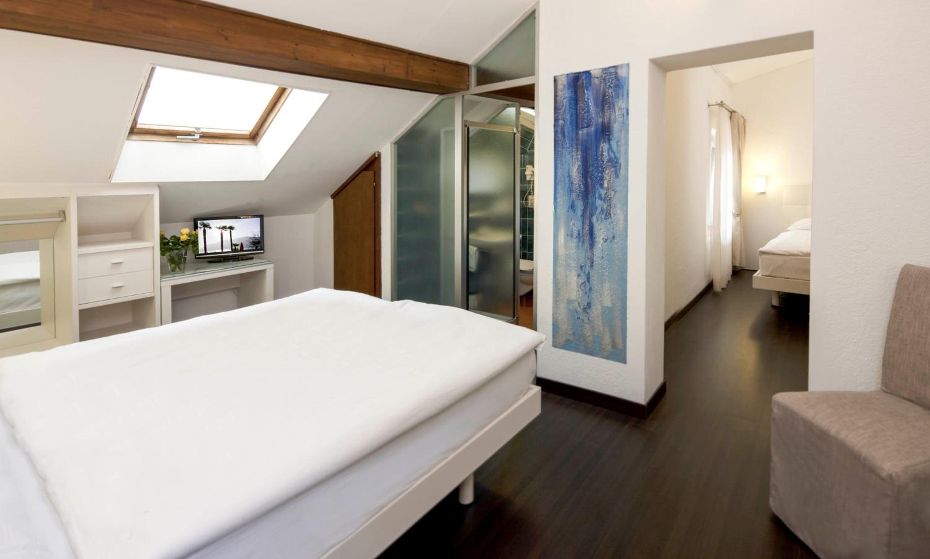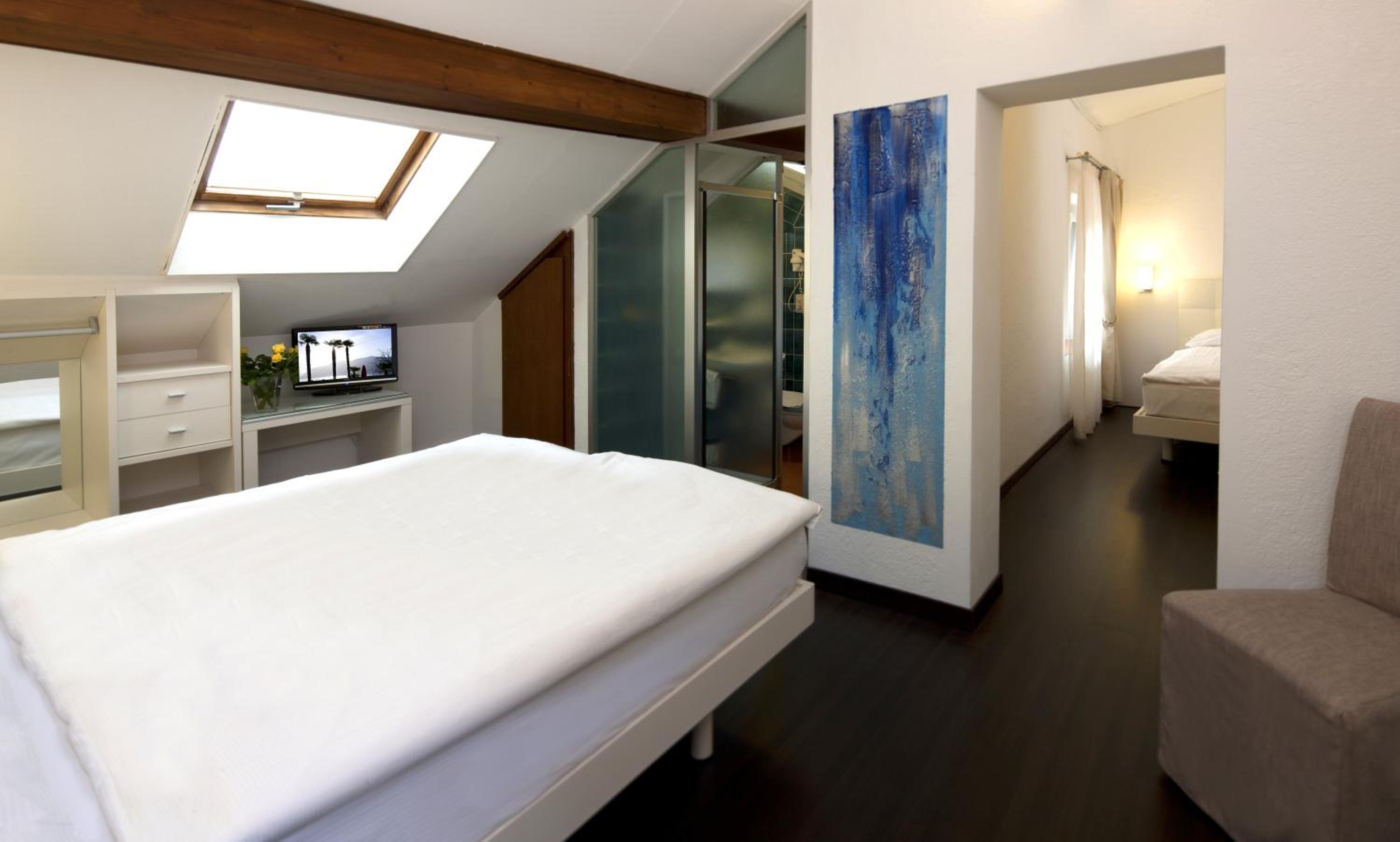 Optimal gelegen, direkt an der Piazza. Comfort Zimmer mit Bad ist klein aber geräumig. Das Frühstück bietet eine umfangreiche Auswahl; Eierspeisen werden auf Wunsch frisch zubereitet. Grosses Garten-Restaurant direkt an der Piazza, wunderschönes Grotto.
