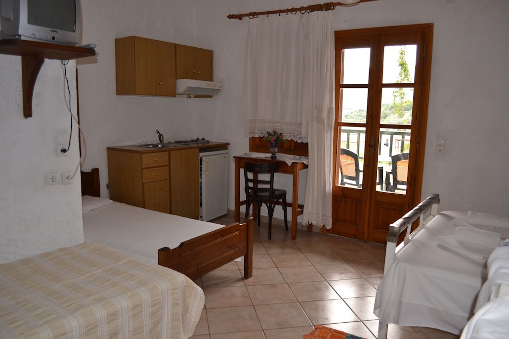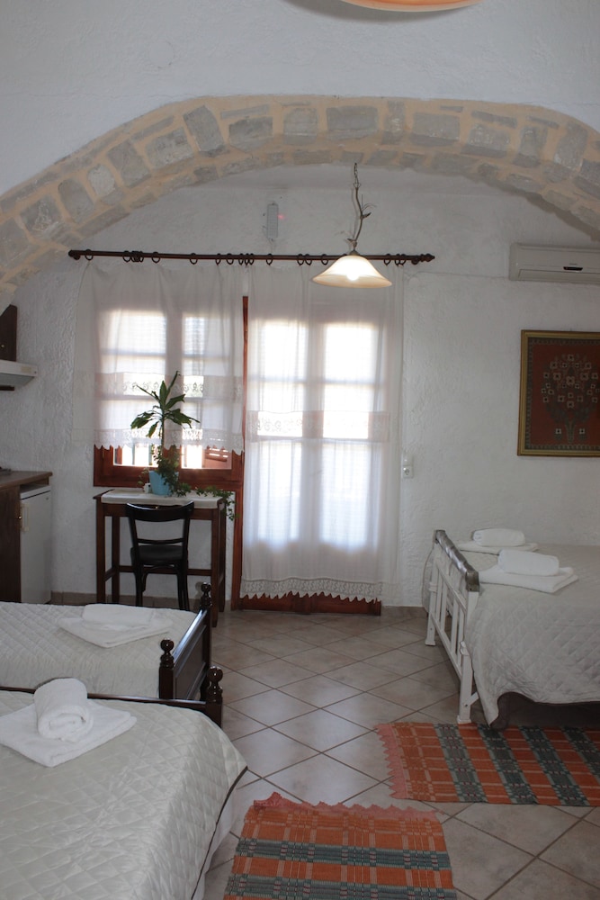 Simple room but a very gracious owner. We don't speak Greek and she didn't speak English but she prepared a lovely dinner for us. We felt like we had become part of her family.