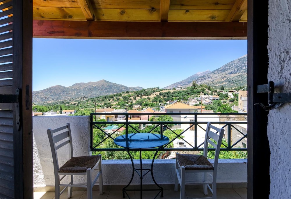 The hosts gave us a lovely welcome. We had a balcony to the back if the property, with an open view to the west and Psiloritis.