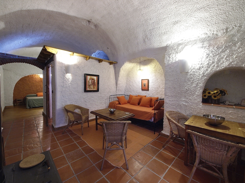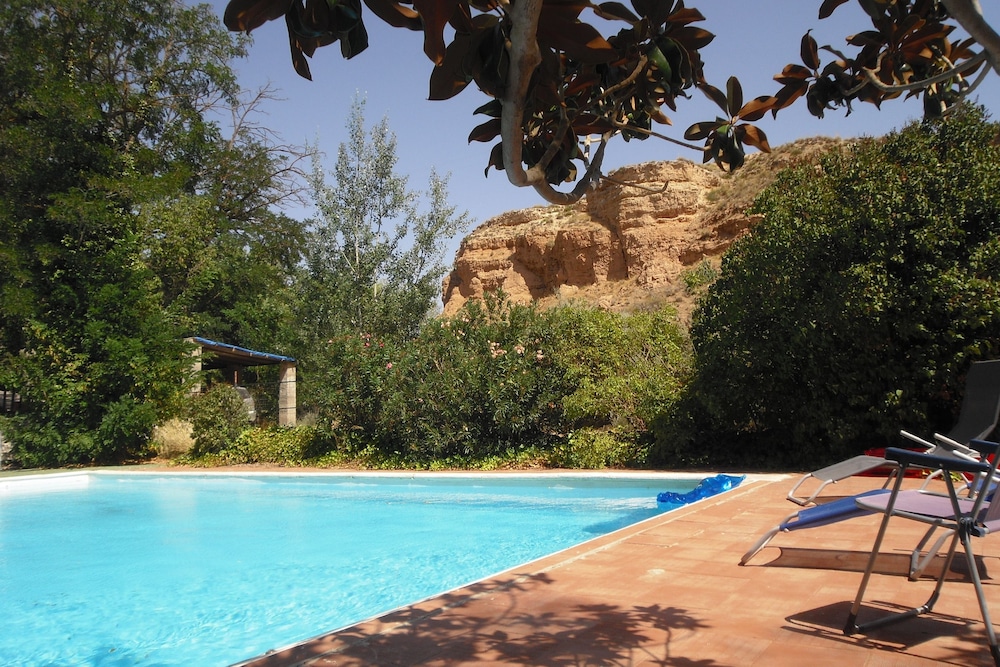 Cueva y ubicación muy buena si sabes al tipo de sitio que vas. Piscina gigante y limpia entorno de naturaleza y tranquilidad. Cerca de guadix