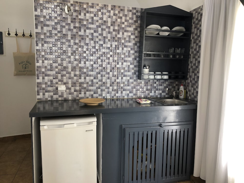 The rooms were spacious and immaculate with food and water in the fridge for us and a complimentary bottle of wine. The views from the Caves & Terrace were beautiful, as was the sunset. It was very quiet. Overall a great place to relax, with an easy walk to shops and restaurants. Loved it at Aspa Villas and would stay again! 🙂