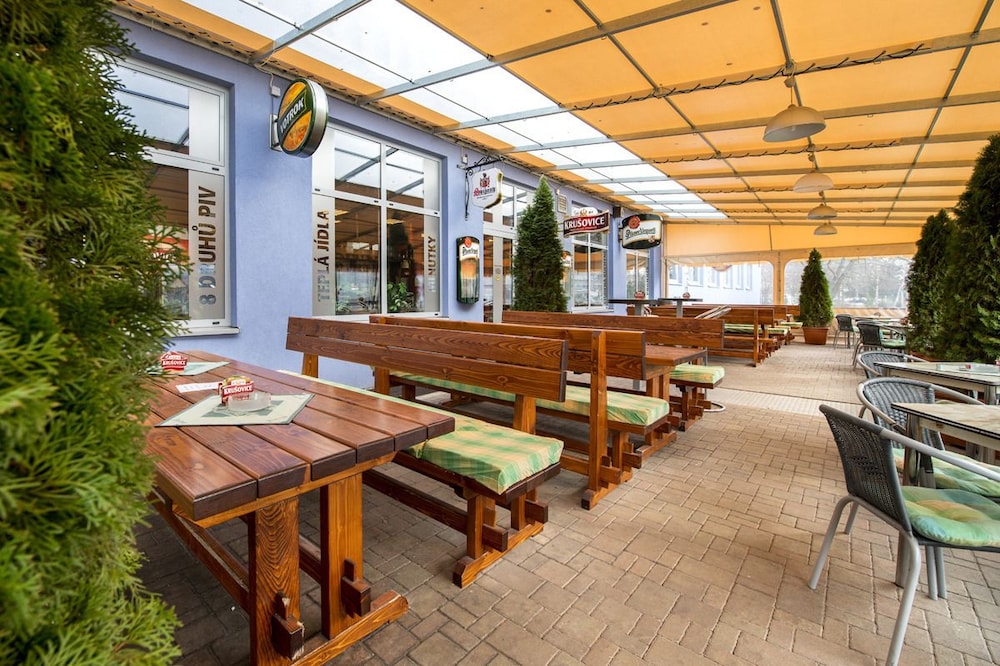 I've stayed here many times visiting family. It's a very basic clean hotel with very pleasant staff. The lack of air conditioning could be an issue as summers seem to be hotter and hotter every year. There is a bus stop next to the hotel to go to the main train and bus station. Also there is a typical Czech pub on each corner. Thanks.