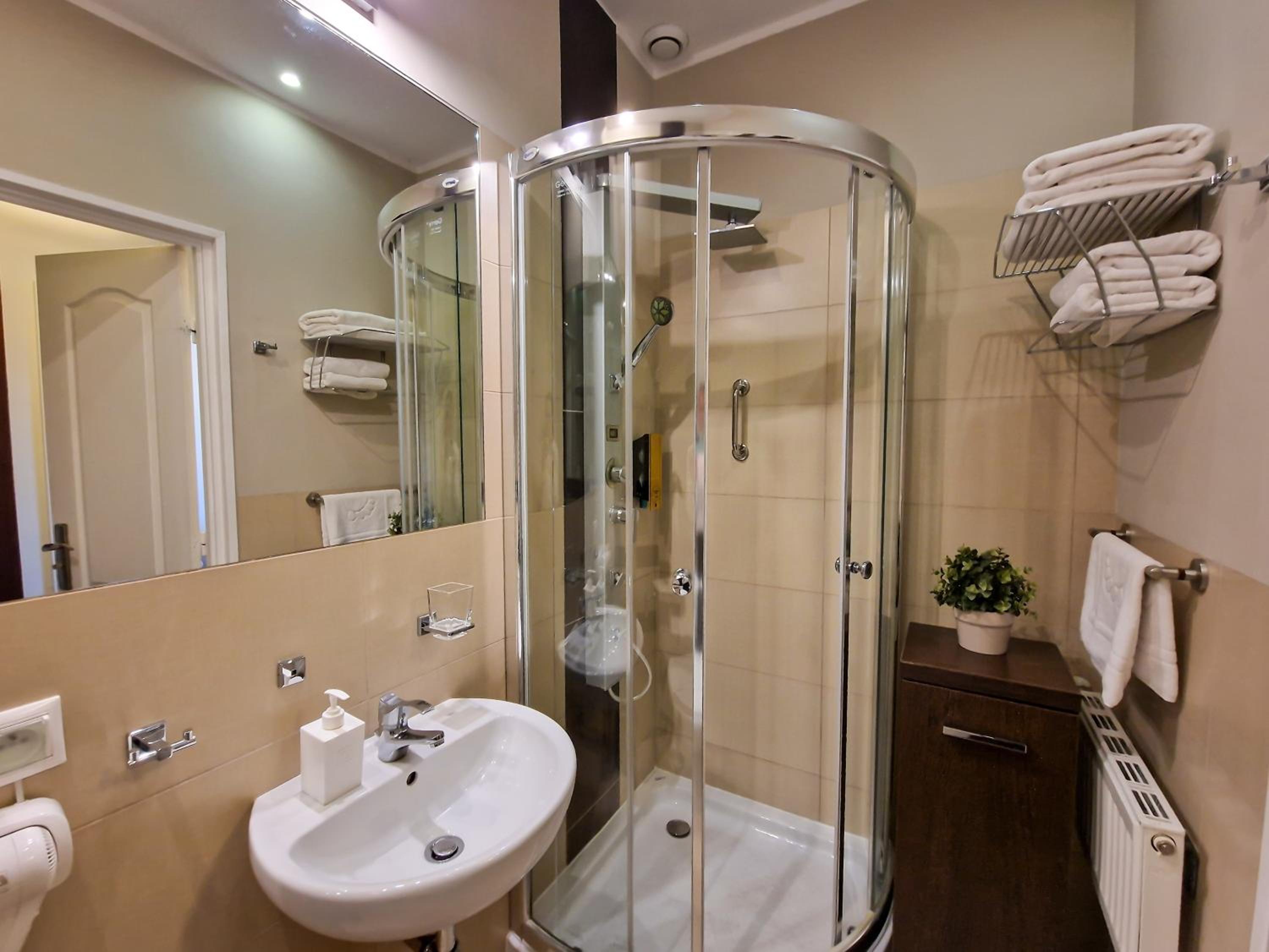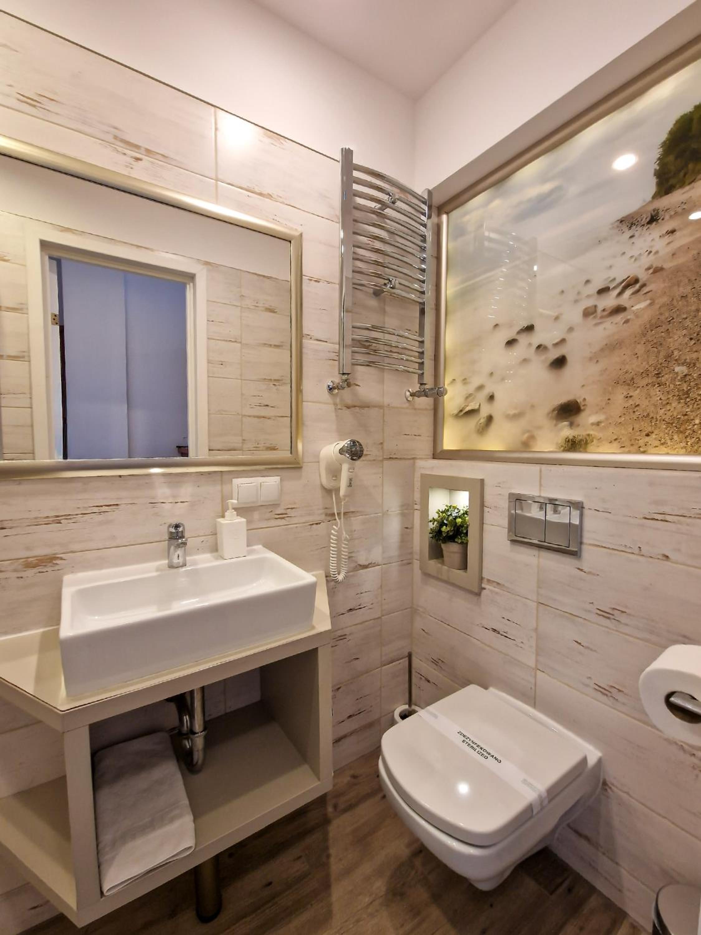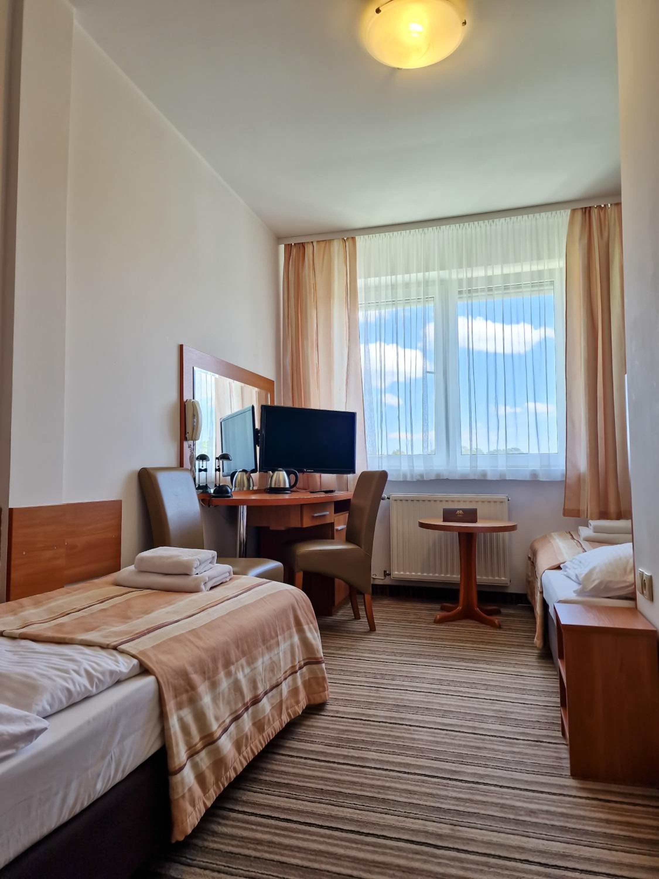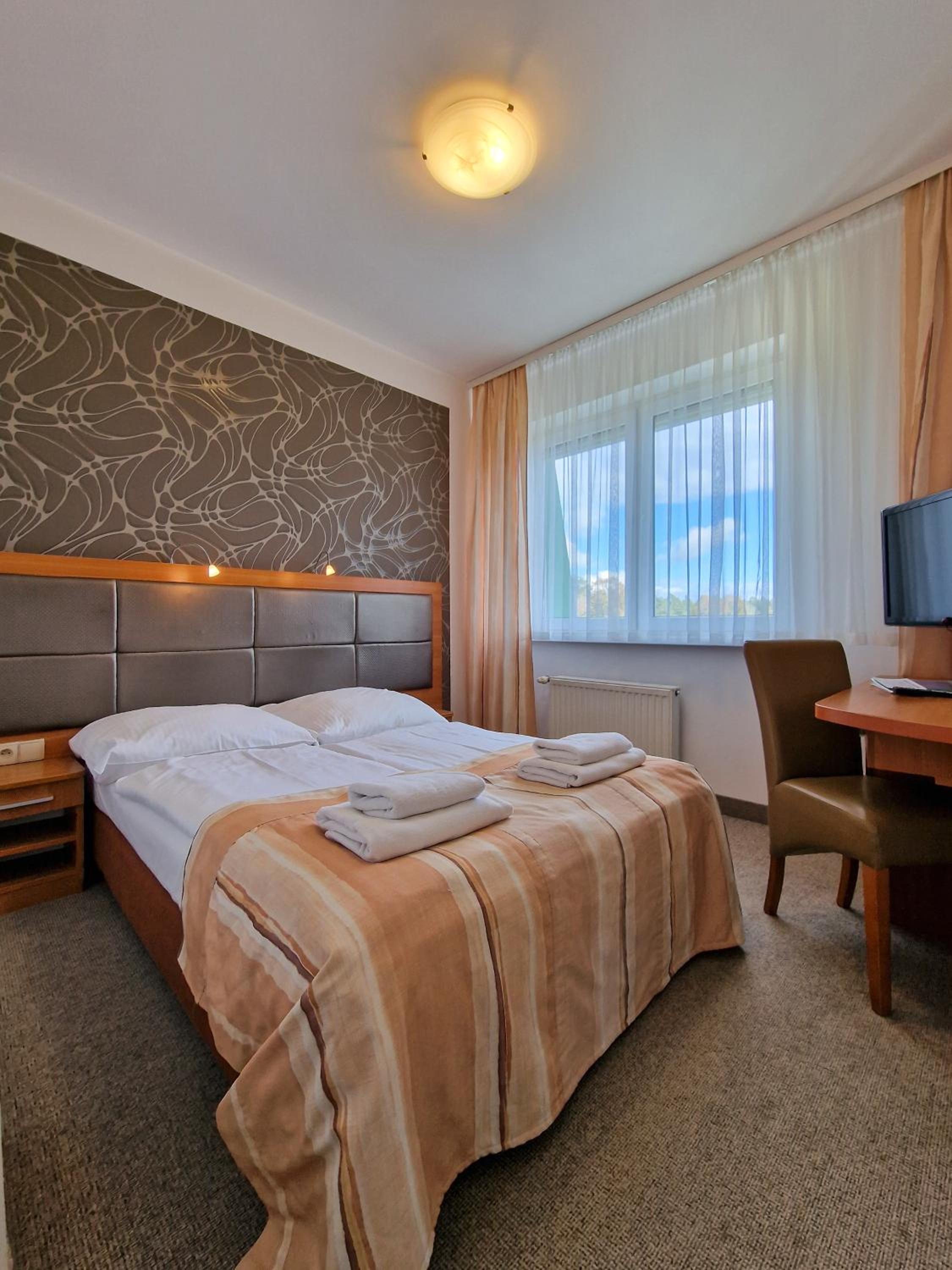 Pokój czysty, przestronny, śniadanie dobre. W pokoju lodówka, czajnik, herbata, kawa, suszarka do włosów. Łazienka czysta i schludna. Hotel w pobliżu zejścia na plażę.