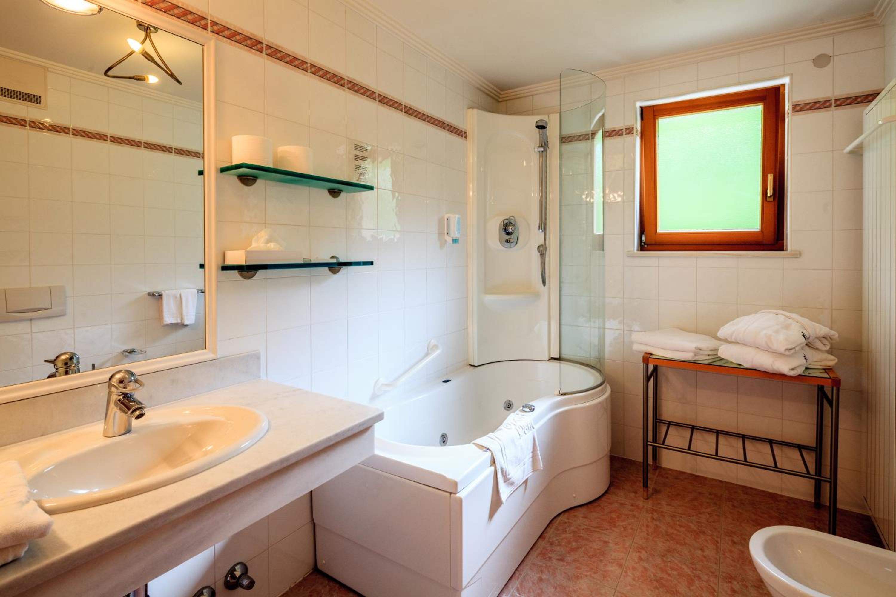 Ho apprezzato molto il bagno molto ampio, il terrazzino e la camera molto funzionale (TV grande, armadio capiente, divanetto).Tutti gli spazi molto accoglienti, anche la sala colazione davvero bella!E che dire poi della piscina e della spa!!!Tutto davvero curato nei minimi dettagli, addirittura sala relax con vista stupenda!