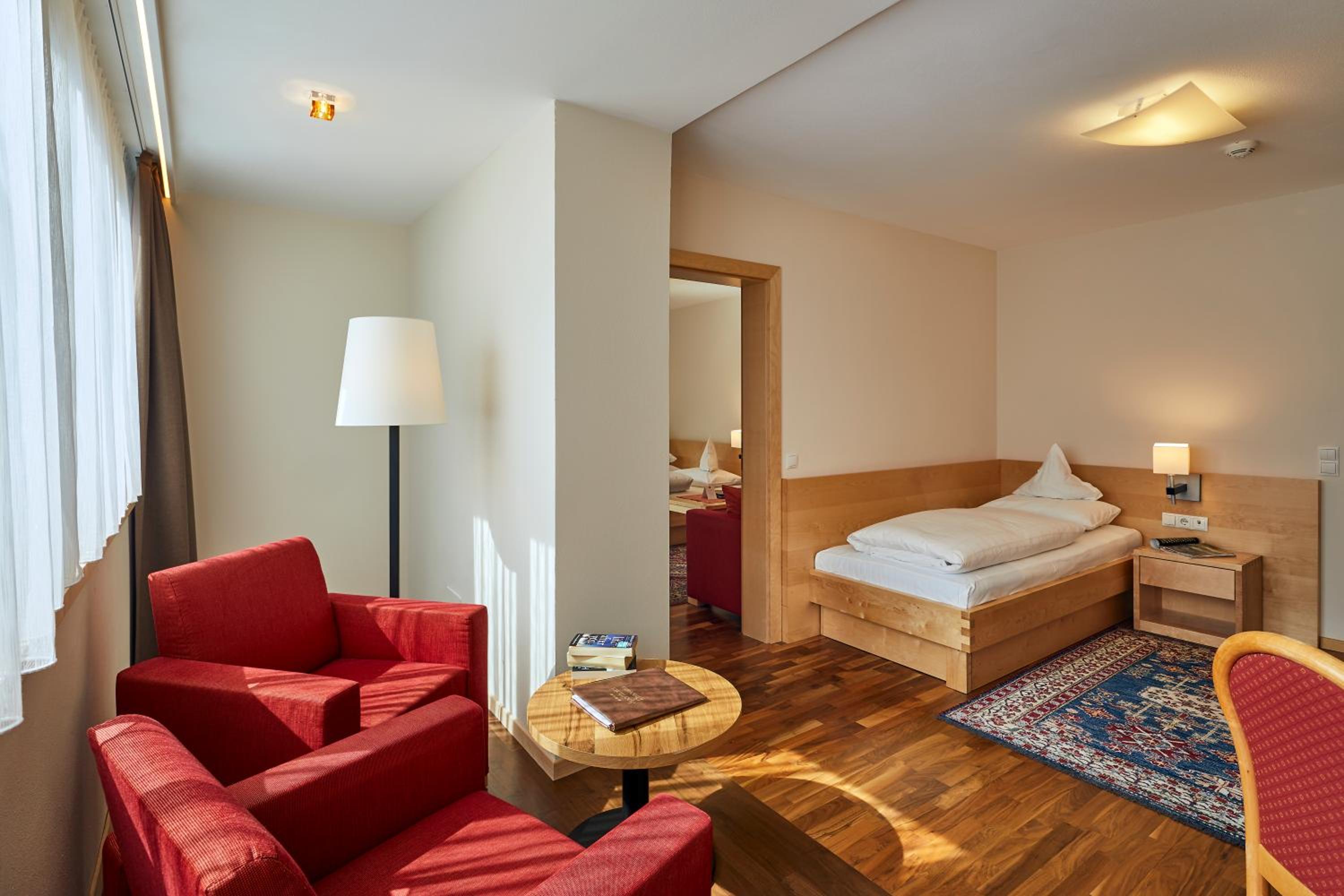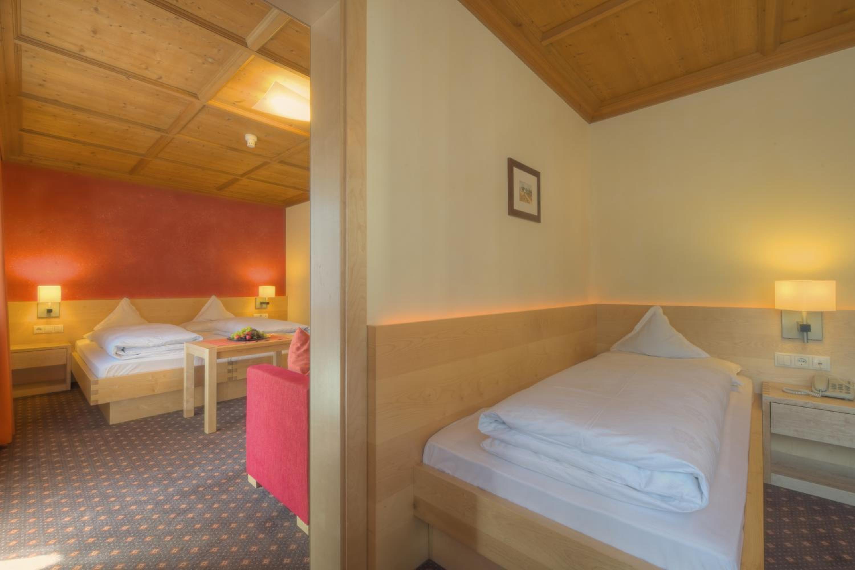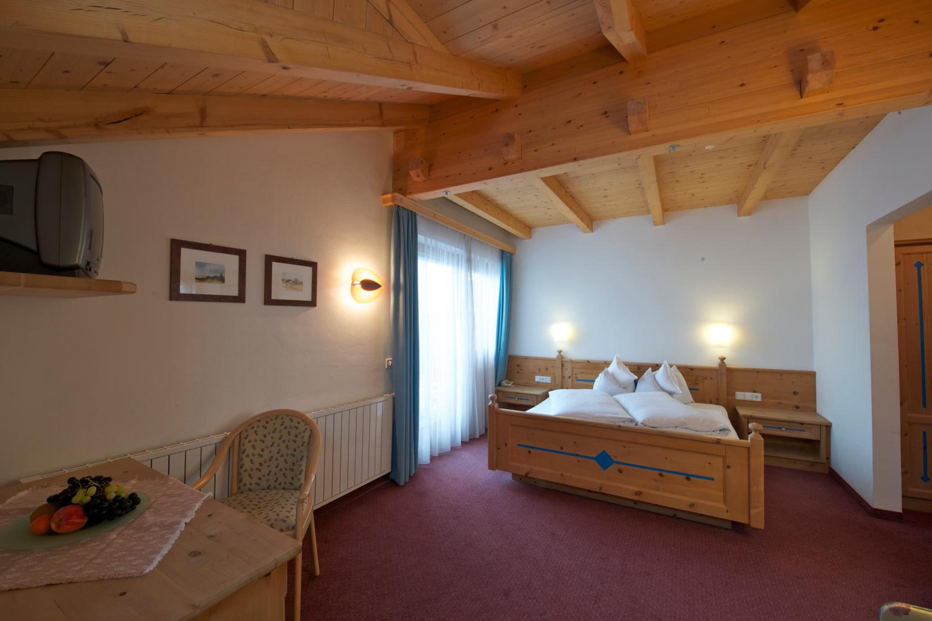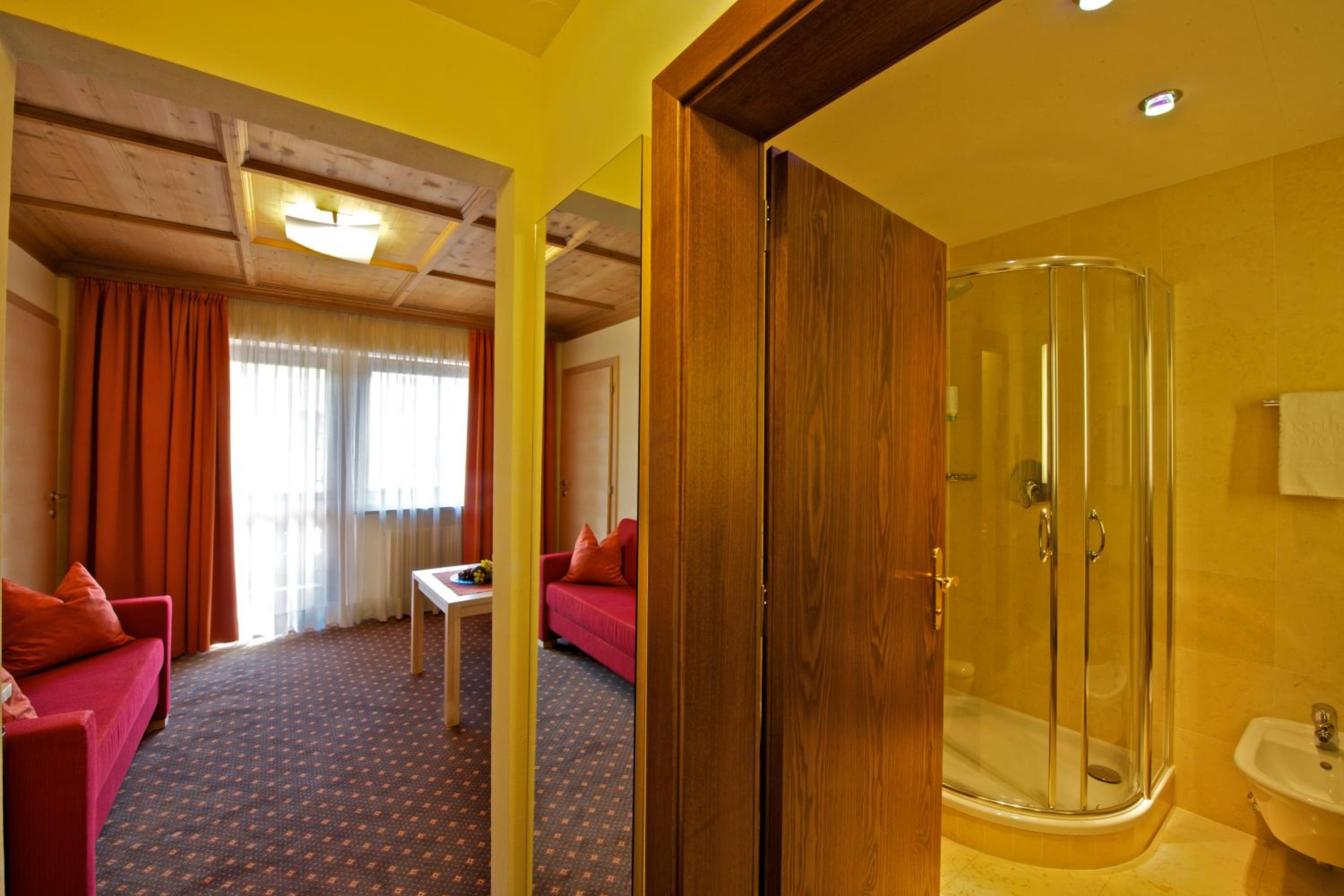 Nettes Zimmer mit Balkon in der Dependance (Haus gegenüber). Schöner, sauberer, grosser Wellnessbereich mit Pool, Sauna, Dampfbad, Tipudarium, Aussenbereich mit Tauchbecken usw. Leckeres Abendessen (hab mich vor Ort für die Halbpension entschieden).