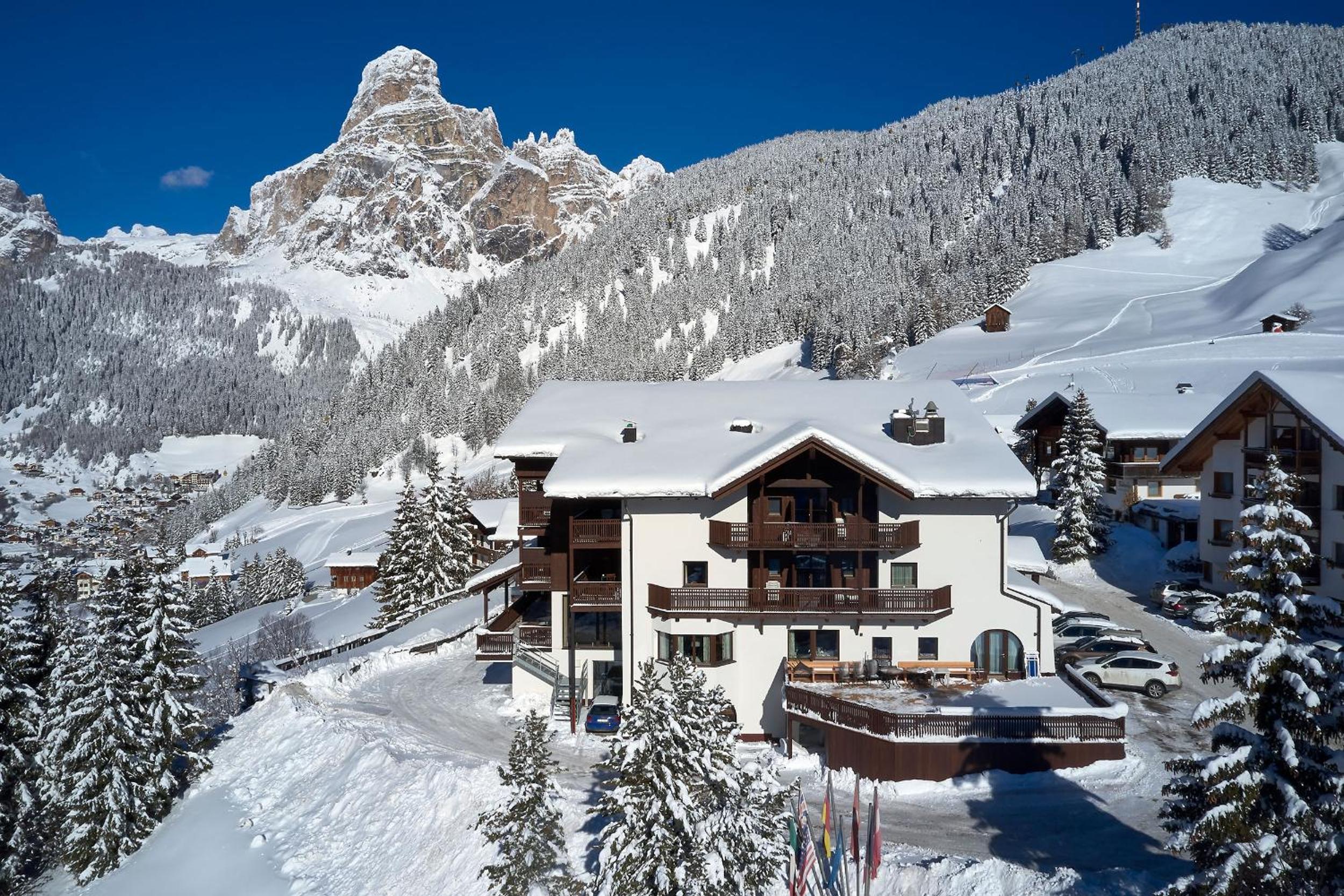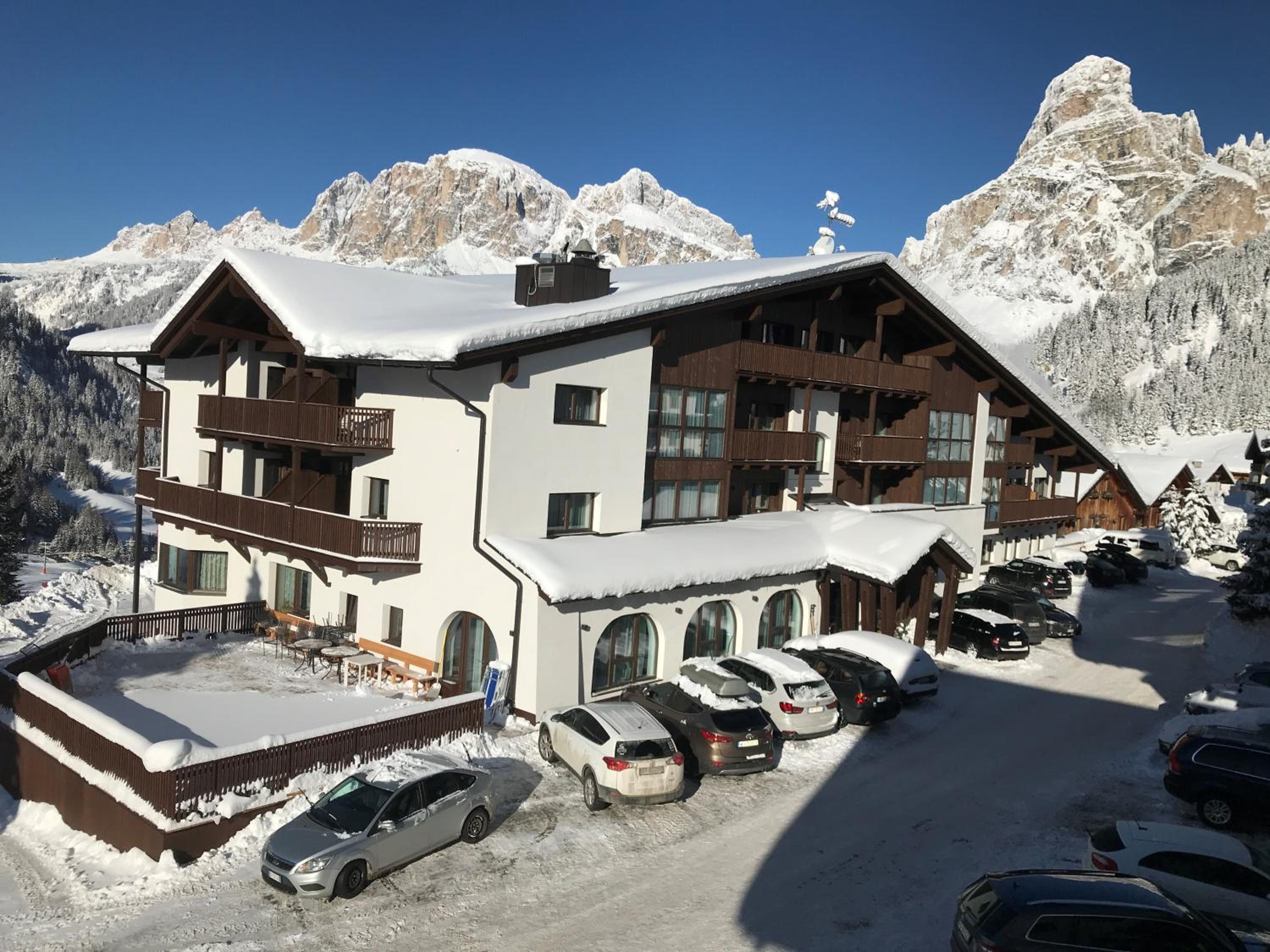 The hotel is located just a few hundred meters uphill from Corvara - it's walkable, but there is also a free bus running every 30 minutes, and several hiking trails start just around the corner. When we visited, we never had an issue with parking as there was plenty of room.